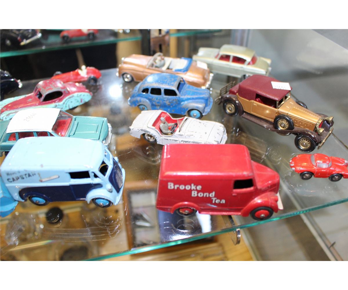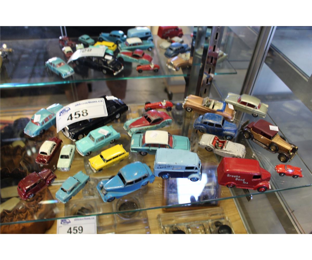 GROUP LOT OF ASSORTED VINTAGE ENGLISH MADE DIE CAST METAL TOY CARS; DINKY, MATCH BOX, LESNEY ETC