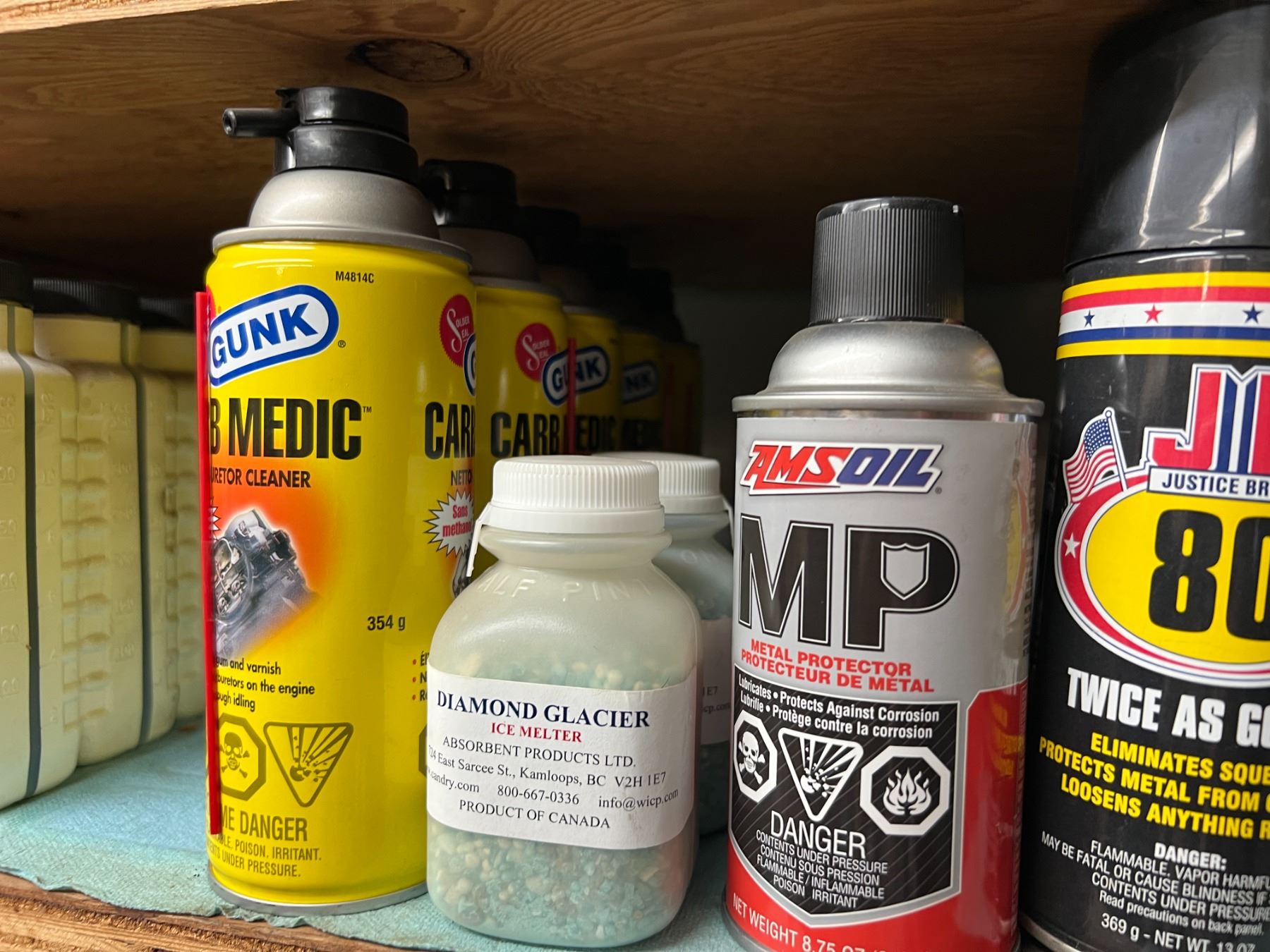 GROUP LOT OF ASST BELRAY FORK OIL 5W AND 15W- 20 LT, PJ1 FORK OIL 15 AND 20. MARINE GEAR LUBE, EXHAUST ENAMEL, CLEAN STOP FOGGING OIL, METALLIC PAINT, CARB MEDIC, BELRAY SYNTHETIC 2 STROKE RACING OIL, BELRAY BRAKE FLUID, FABRIC FILTER OIL, GREASE, CABLE LUBE, GLASS CLEANER, WD40, DIF FLUID, ETC