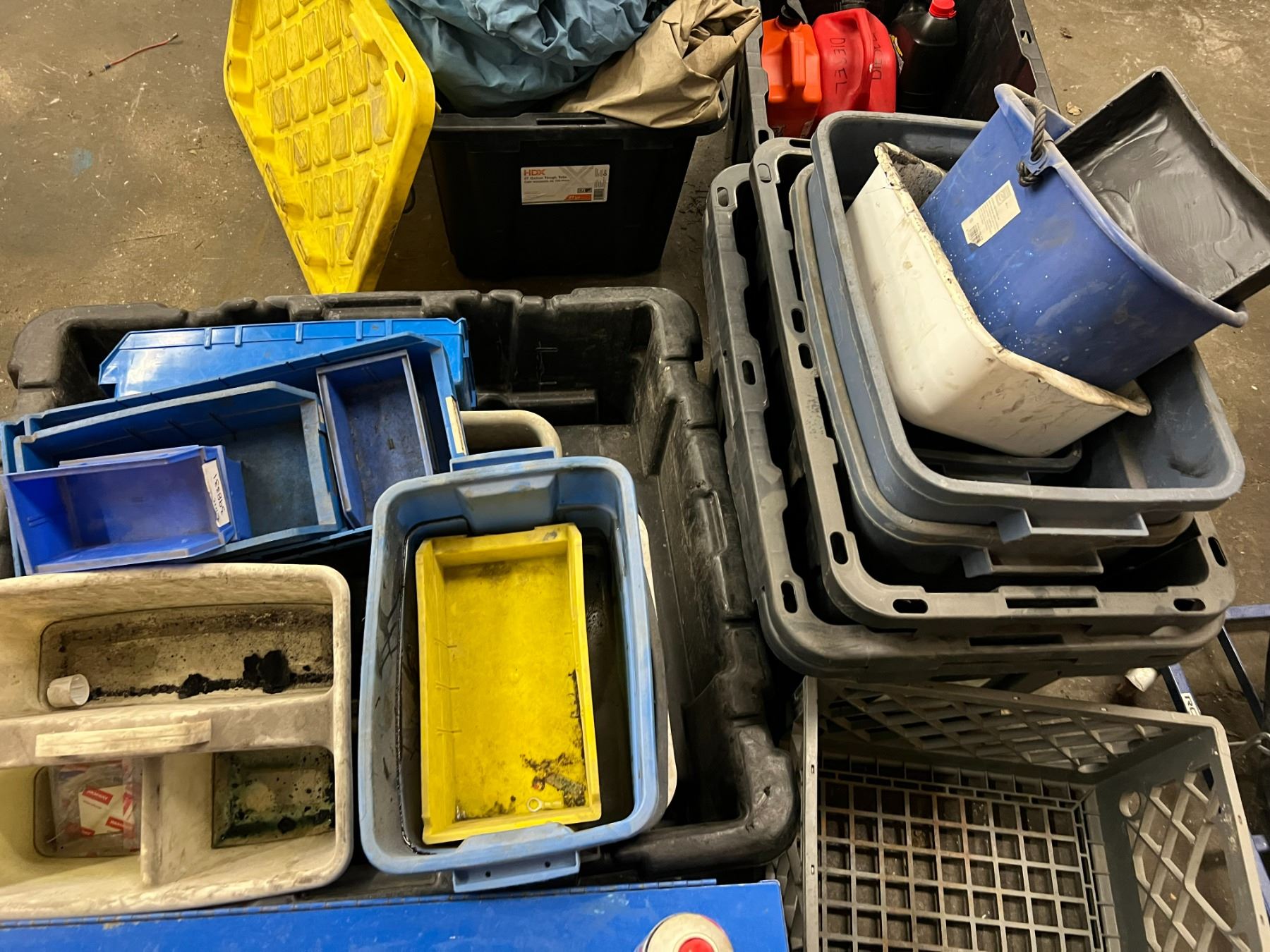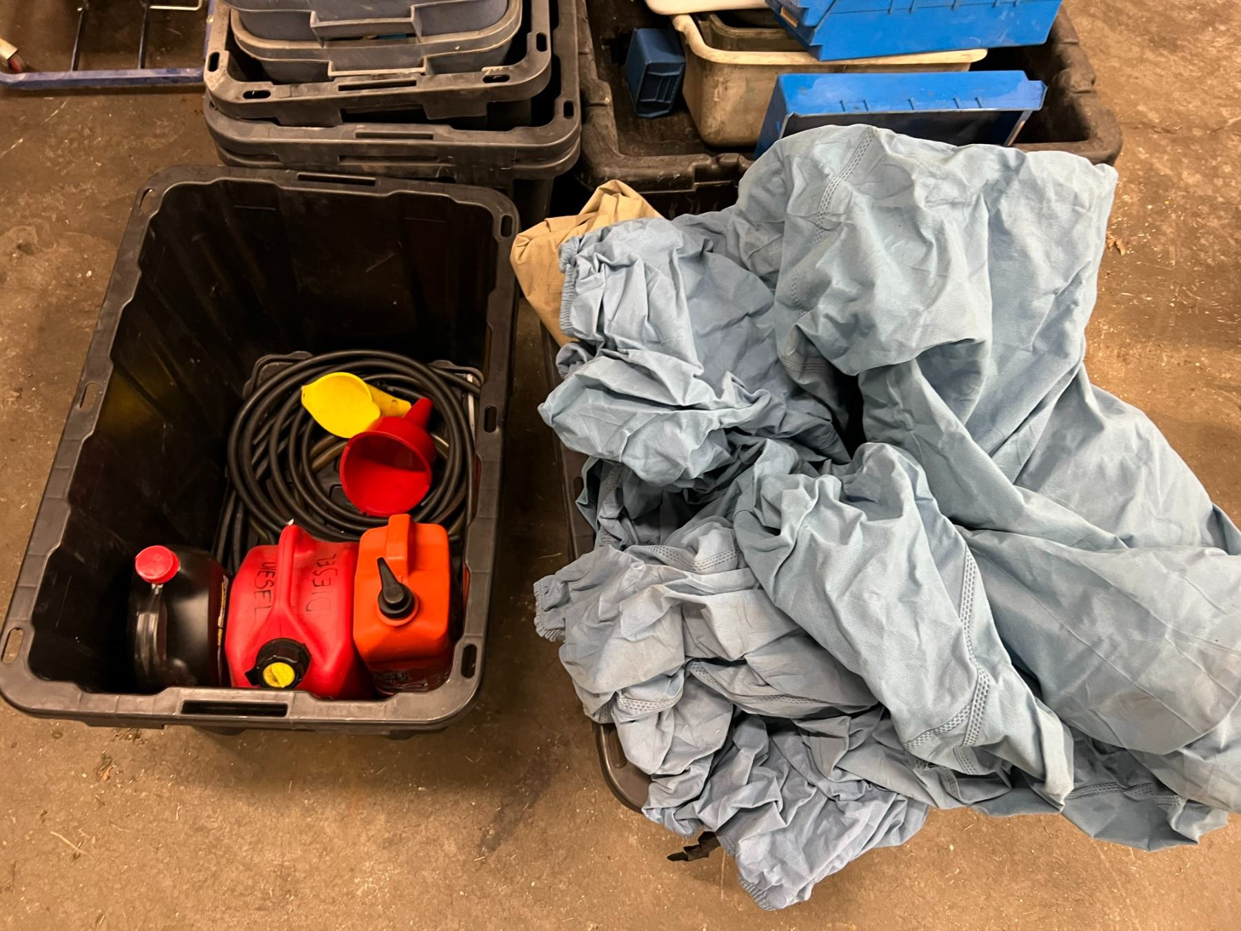 GROUP LOT OF ASST ROK CREEPER, GROTE PRODUCT DISPLAY/SHELF, ASST BINS, BOAT COVERS, FUEL CAN, HAND CLEANER ETC