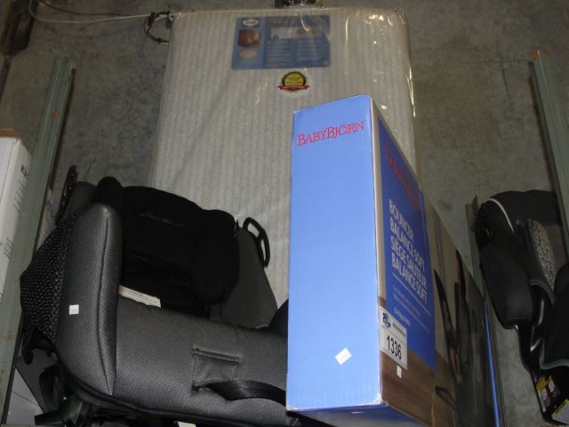 GROUP LOT OF BABY ITEMS; BABY BJORN BOUNCER, CAR SEAT AND SEALY CRIB MATTRESS