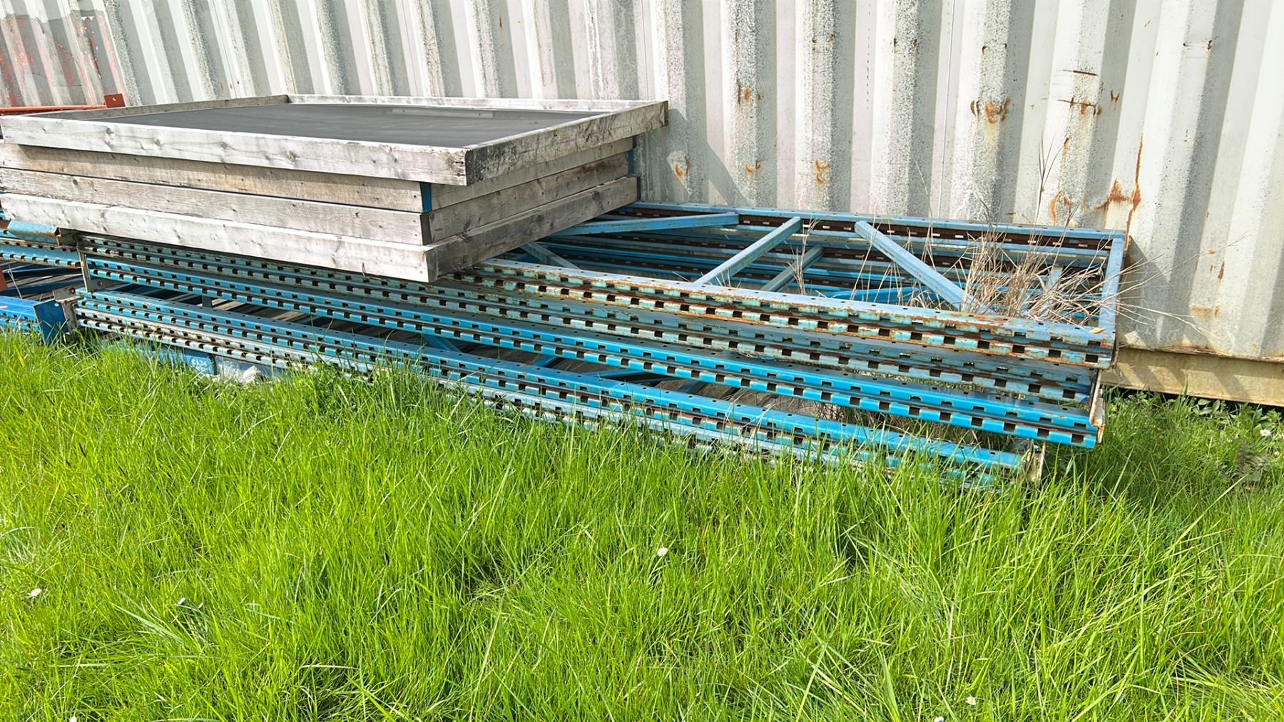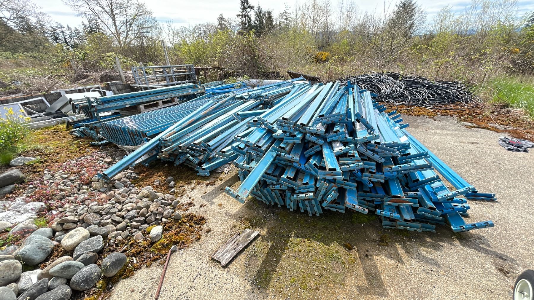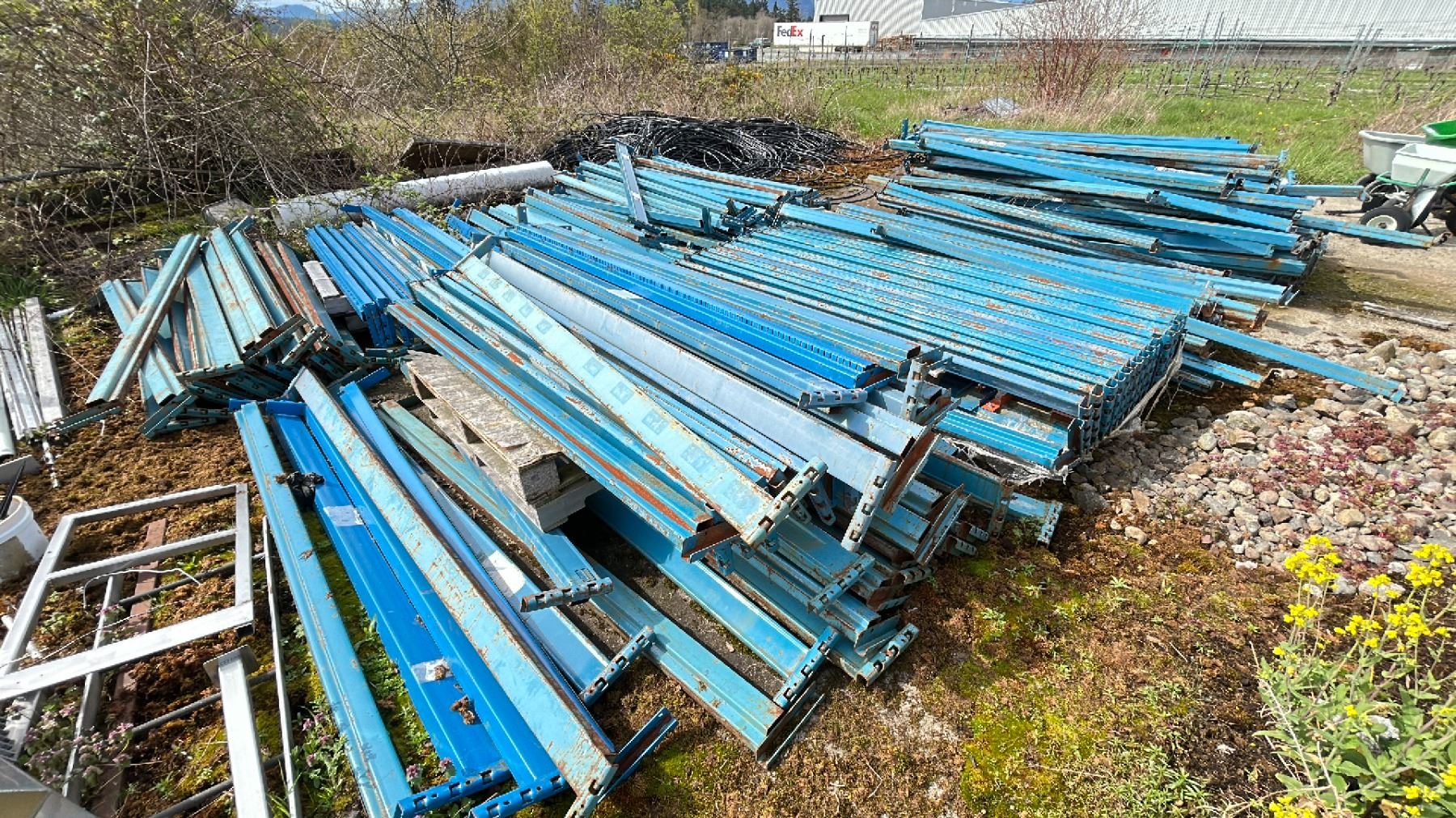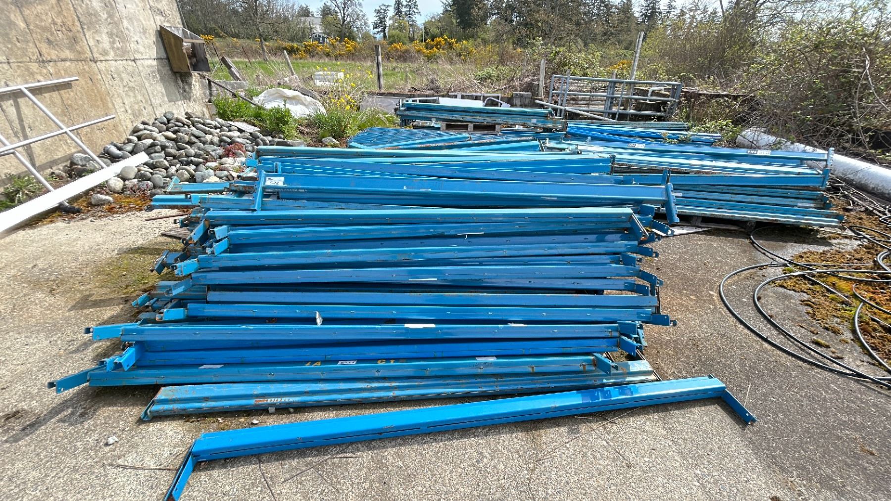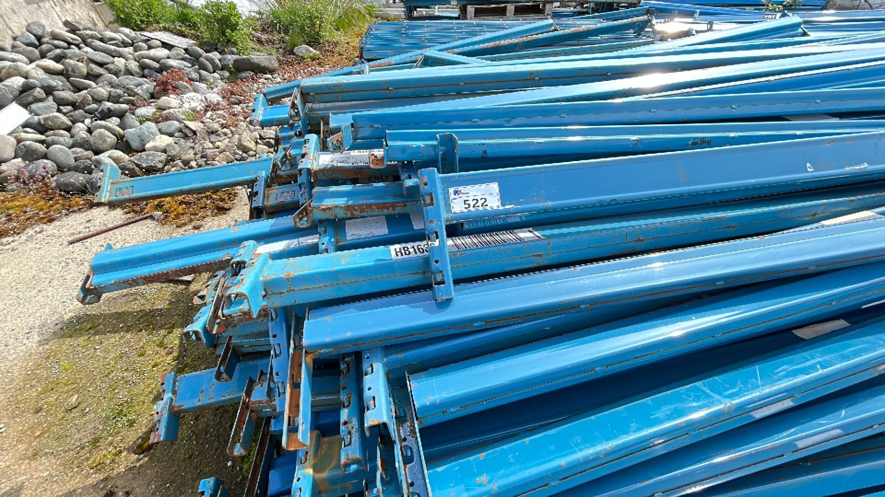GROUP LOT OF DISASSEMBLED RACKING. 8' ARPAC BEAMS APPROX 320, WITH APPROX 11 BEAMS. LOCATED OUTSIDE THE BUILDING