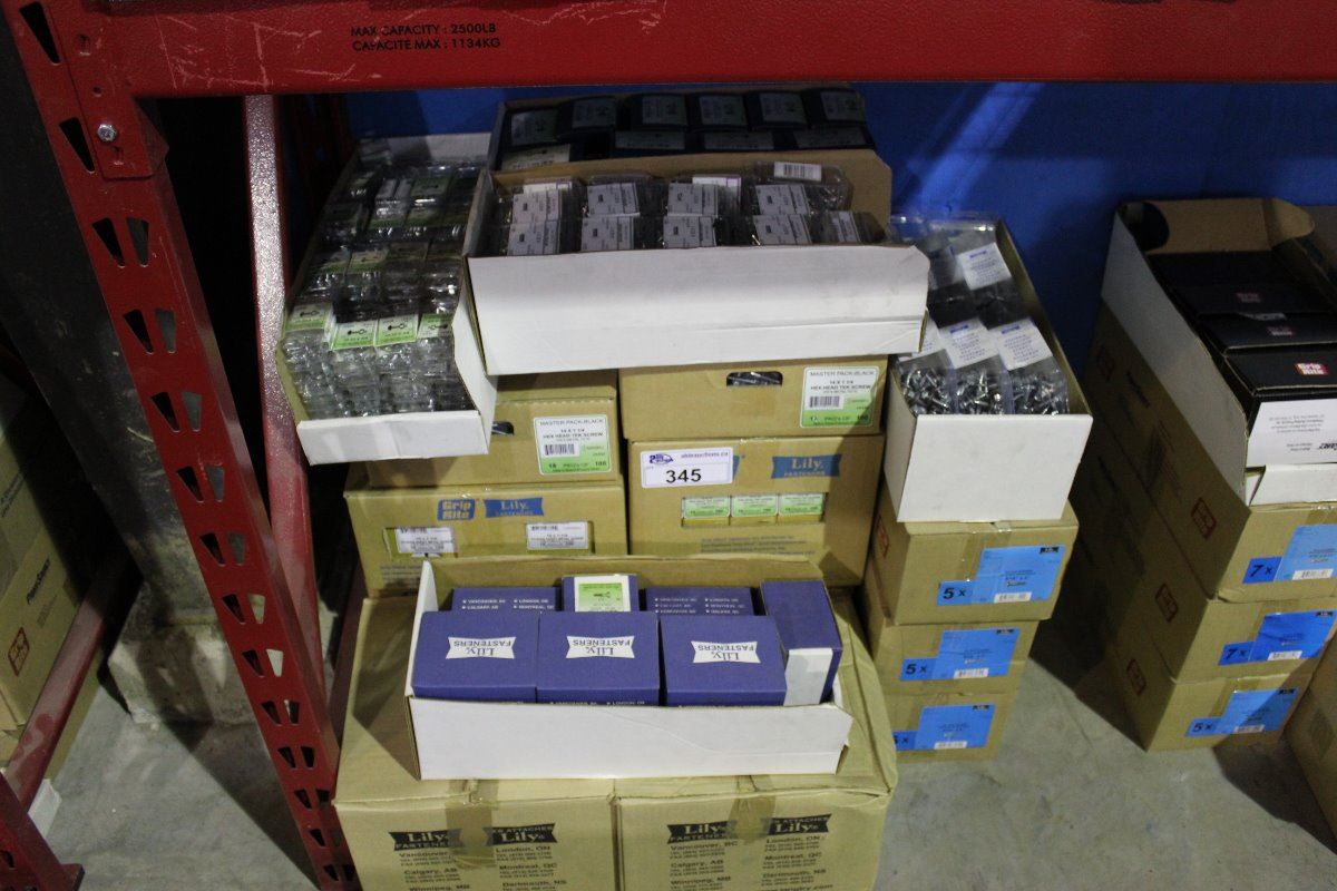 GROUP LOT OF NEW BOXED ASSORTED FASTENERS - HEXED SCREWS/ STAINLESS STEEL SCREWS ETC.