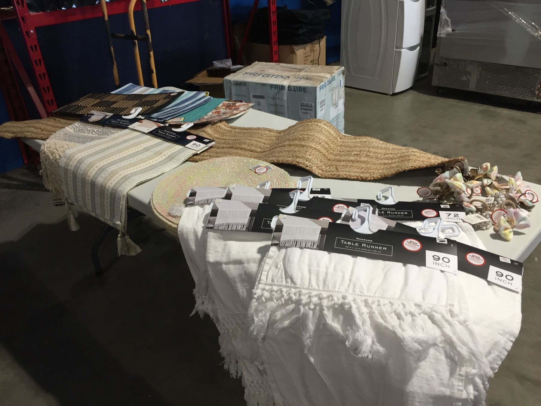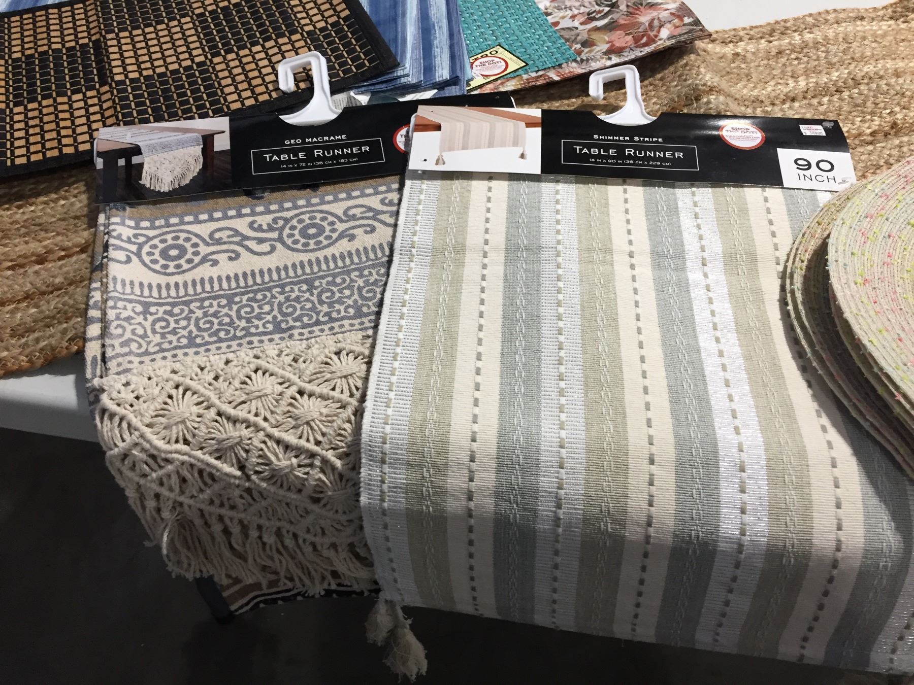 GROUP LOT OF ROUND PLACEMATS, RUNNERS, ASSTD PLACEMATS & ASSTD NAPKIN RING HOLDERS