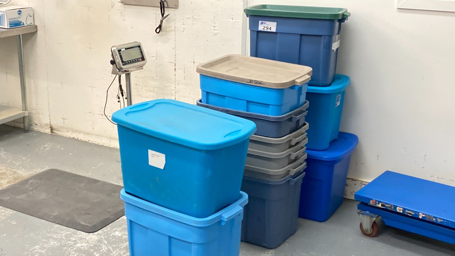 GROUP LOT OF TOTES LOCATED IN PRE-WEIGH ROOM