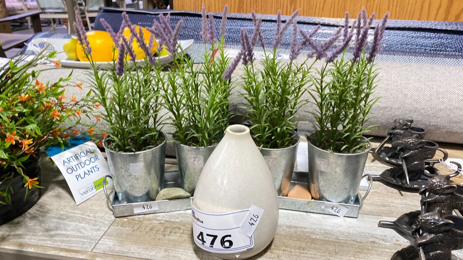 GROUP LOT TWO ARTIFICIAL PLANTS AND VASE