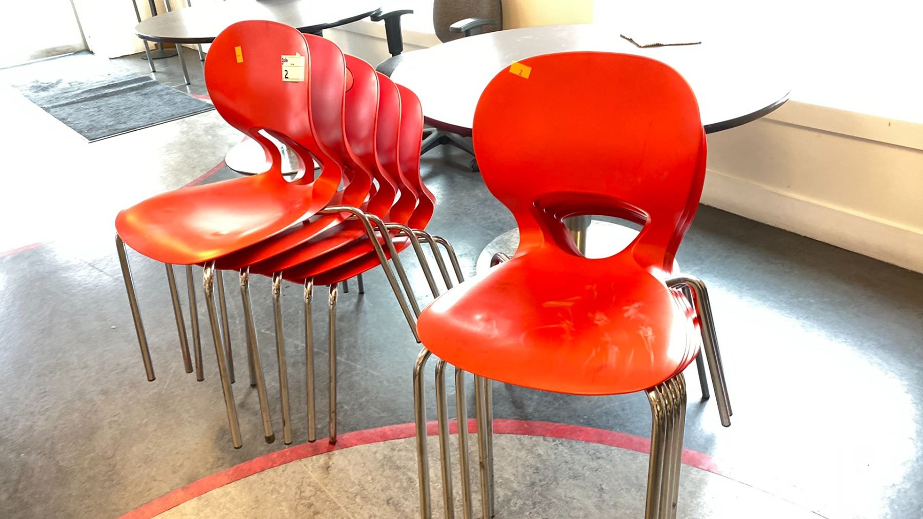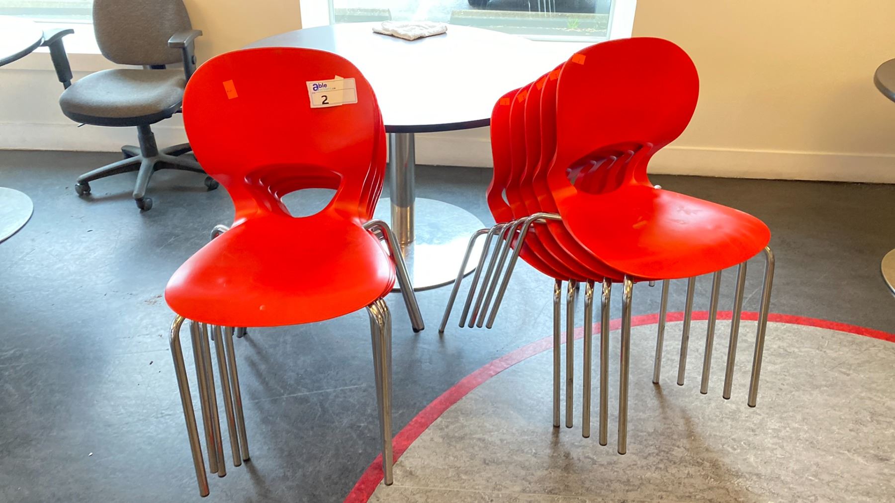 GROUP OF 10 RED STACKING LUNCH ROOM CHAIRS
