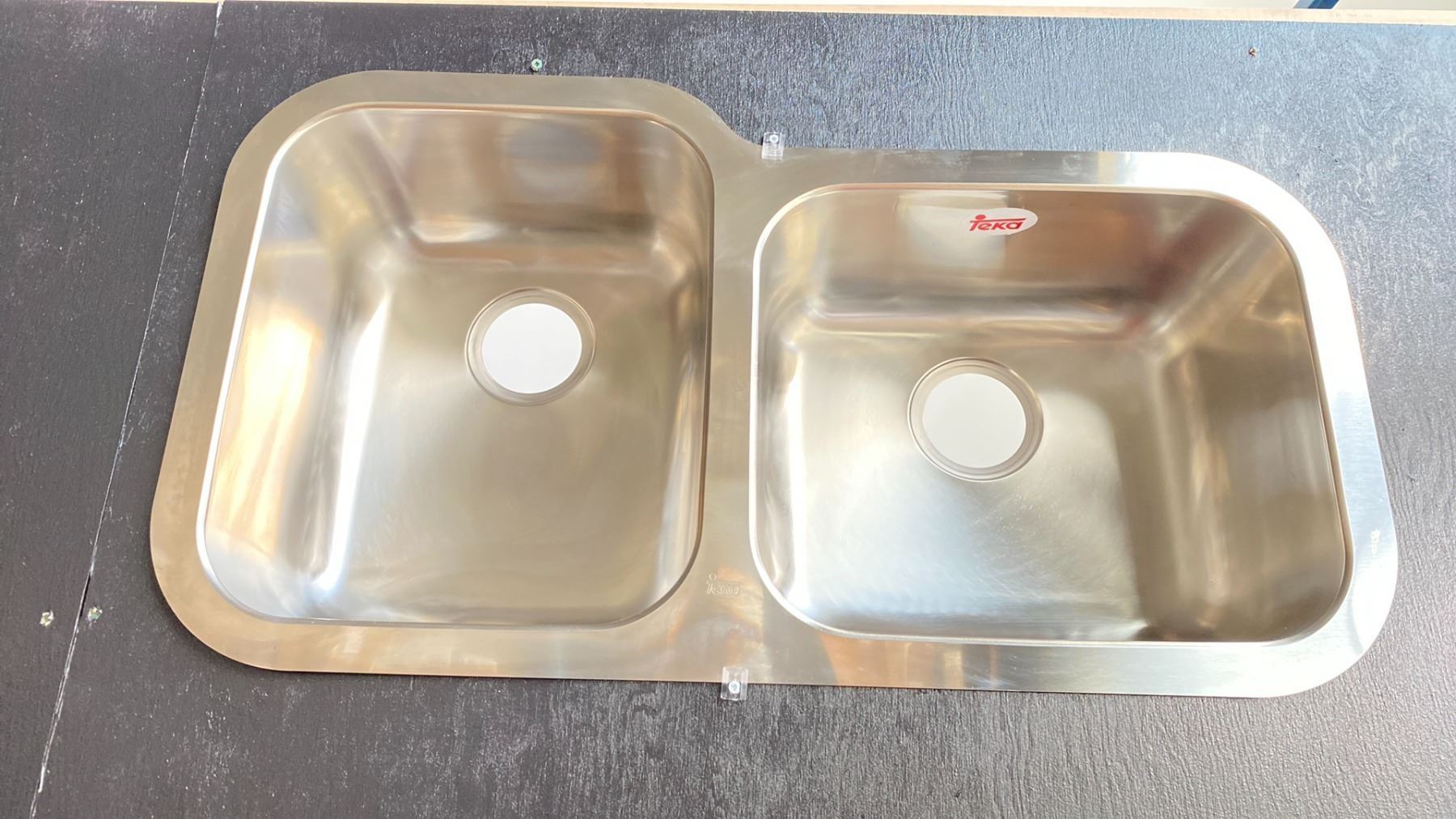GROUP OF 10 TEKA 125099 STAINLESS STEEL UNDERMOUNT DOUBLE SINK 33"X20" GERMAN DESIGN 18 GAUGE STAINLESS STEEL, EUROPEAN HAND POLISHED FINISH SCRATCH, BLEMISH AND HEAT RESISTANT ULTRA SILENT DEADENING PADS