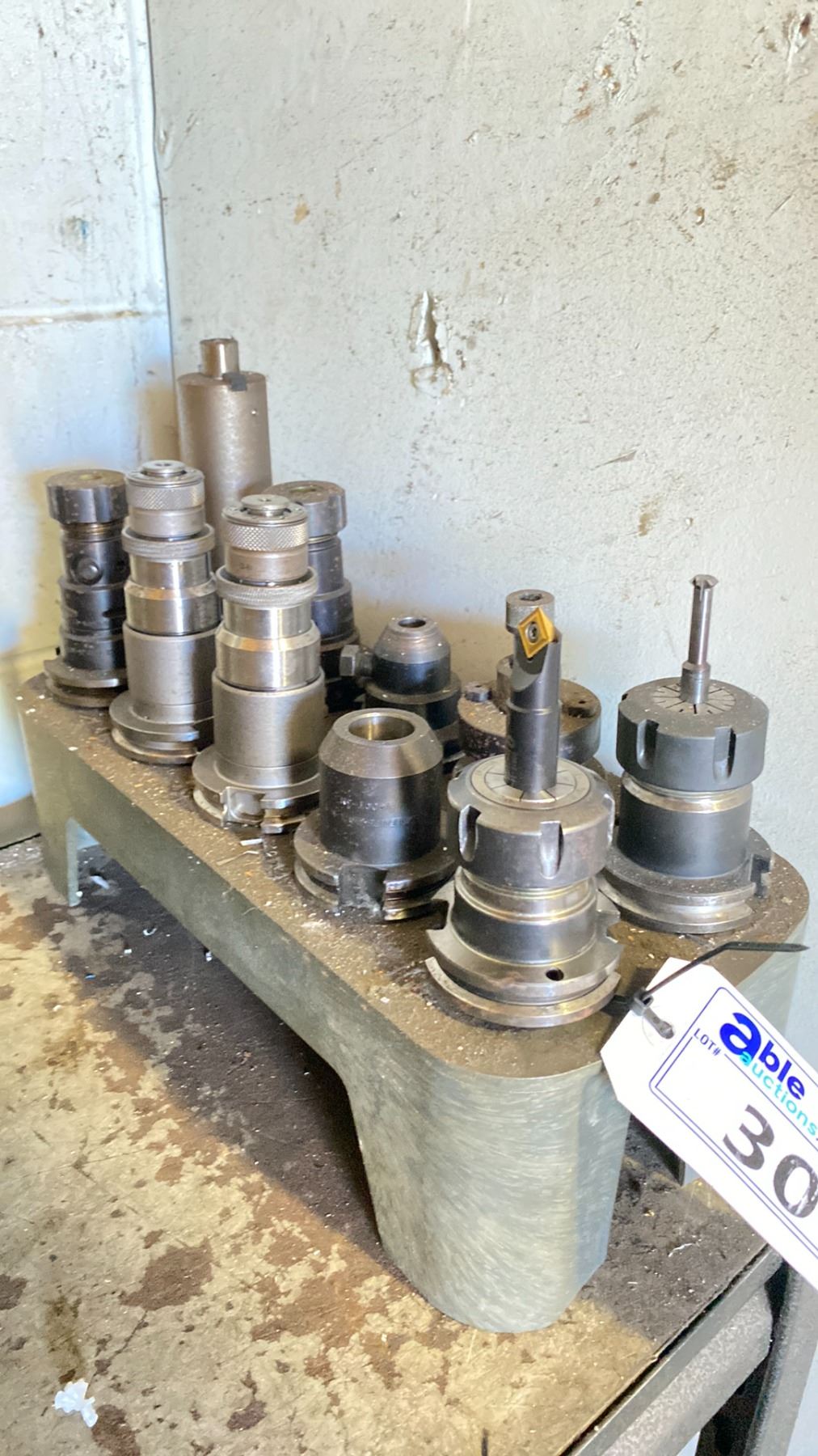 GROUP OF 10 TOOL HOLDERS WITH SOME ASSORTED TOOLING BITS