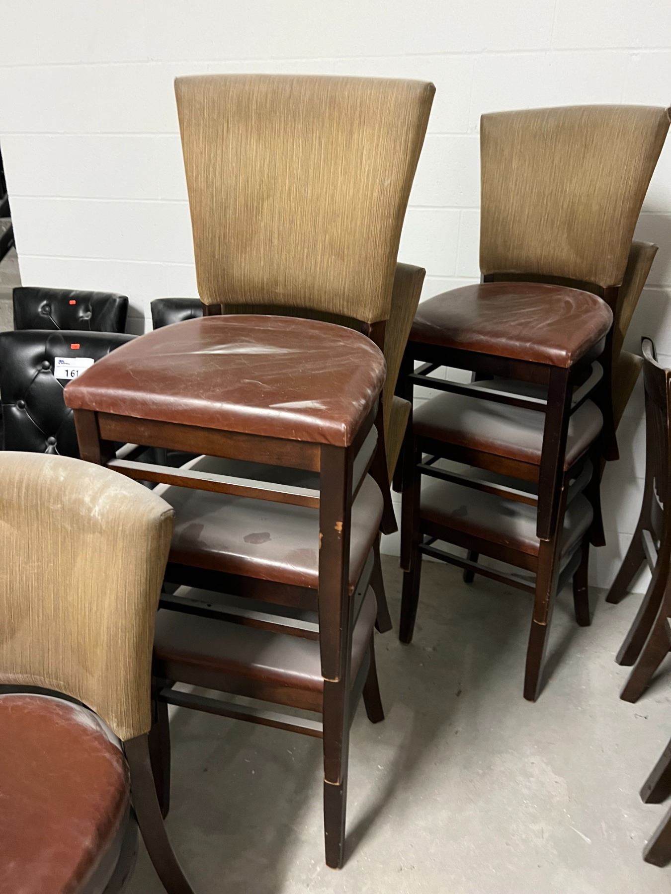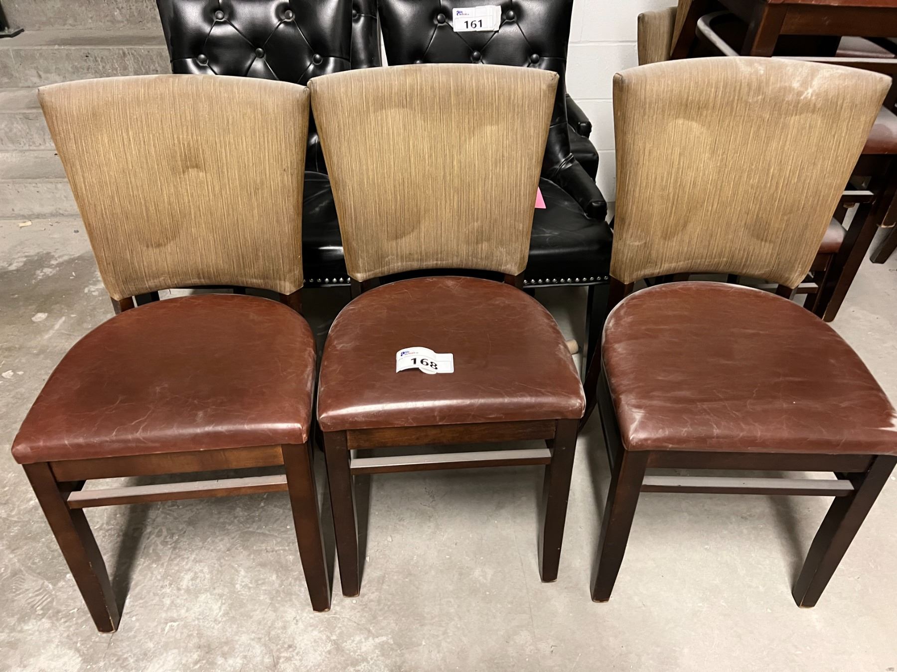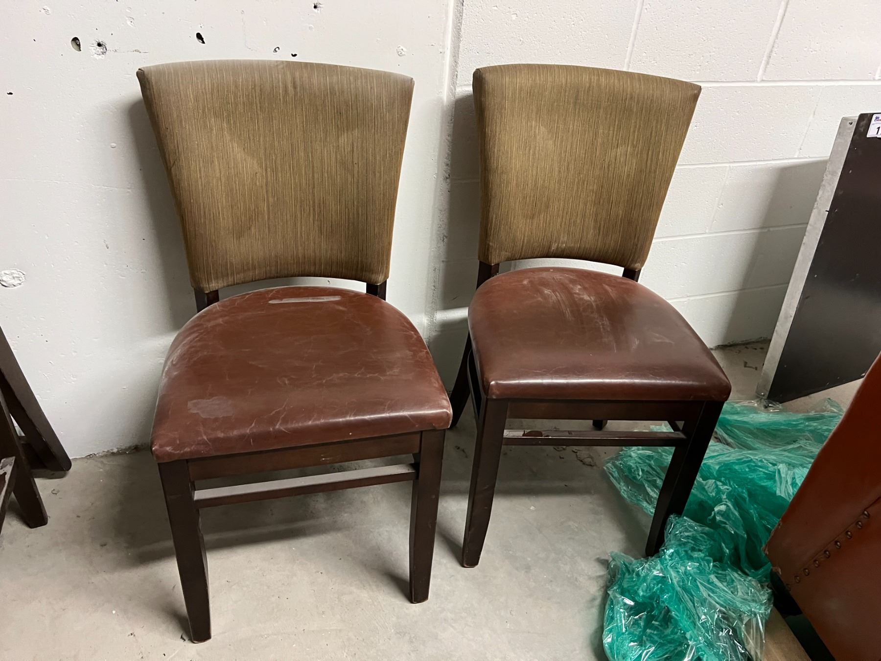 GROUP OF 11 WOOD FRAME VINYL SEAT FABRIC BACK DUSTY CHAIRS