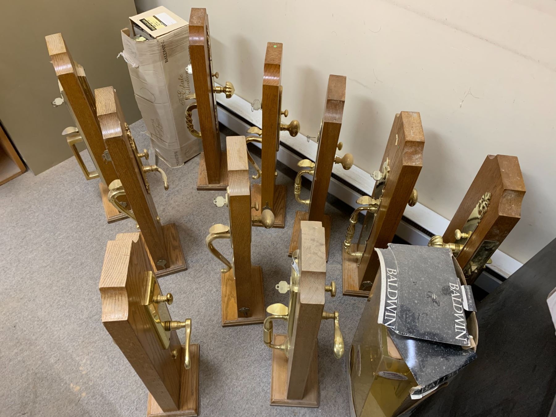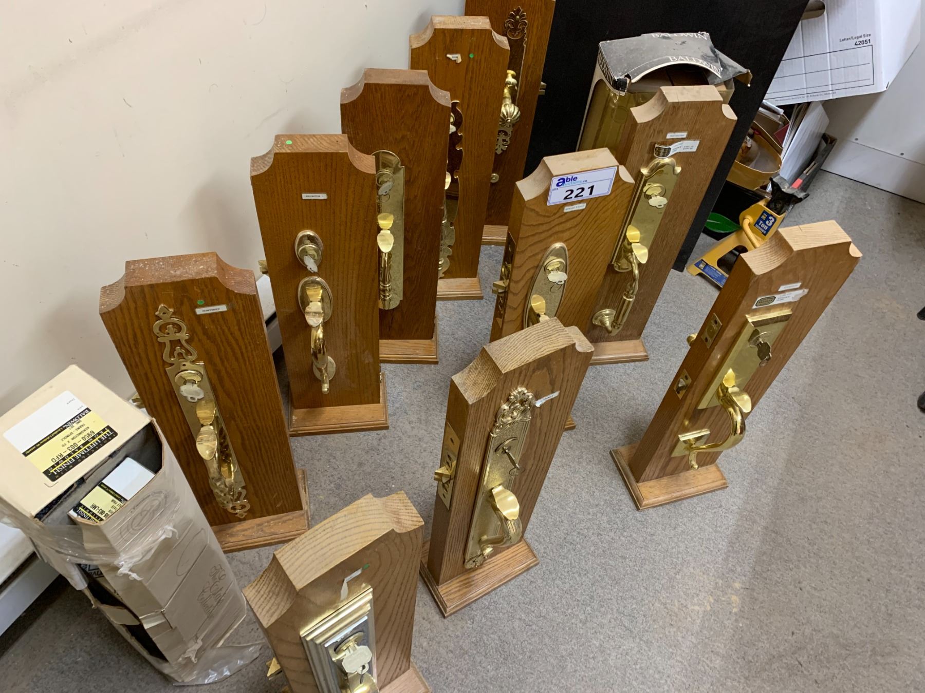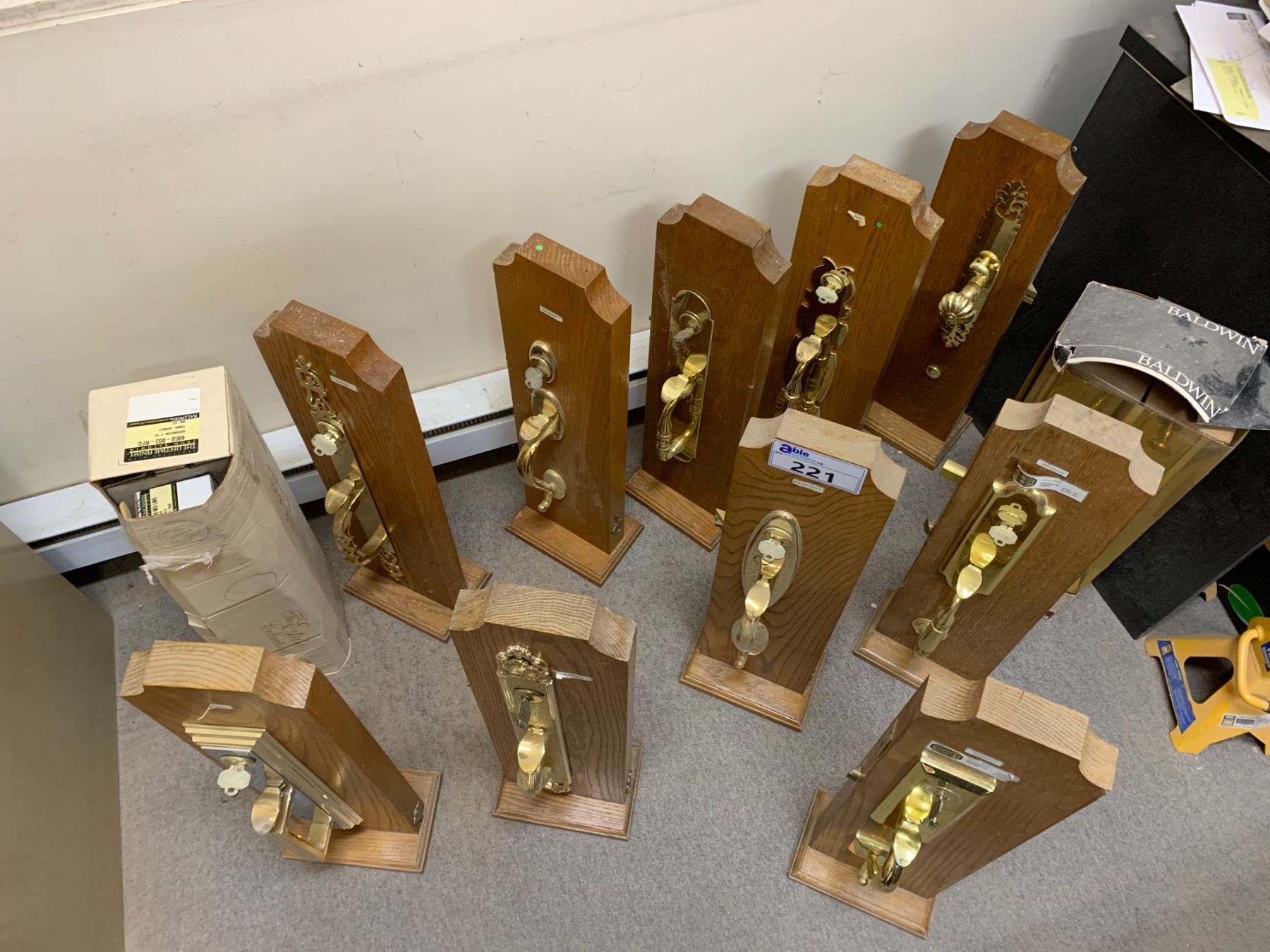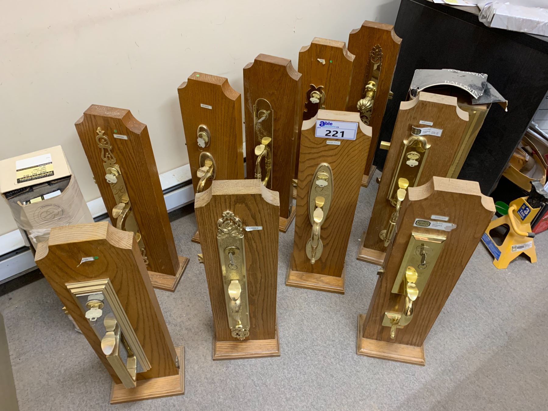 GROUP OF 12 BRASS FINISH EXTERIOR DOOR HANDLE SETS