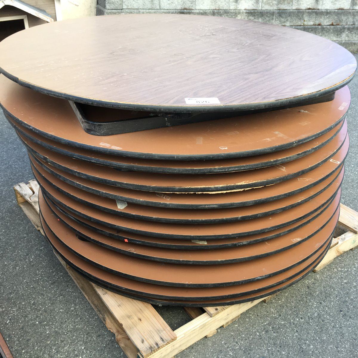 GROUP OF 12 LARGE ROUND FOLDING UTILITY TABLES