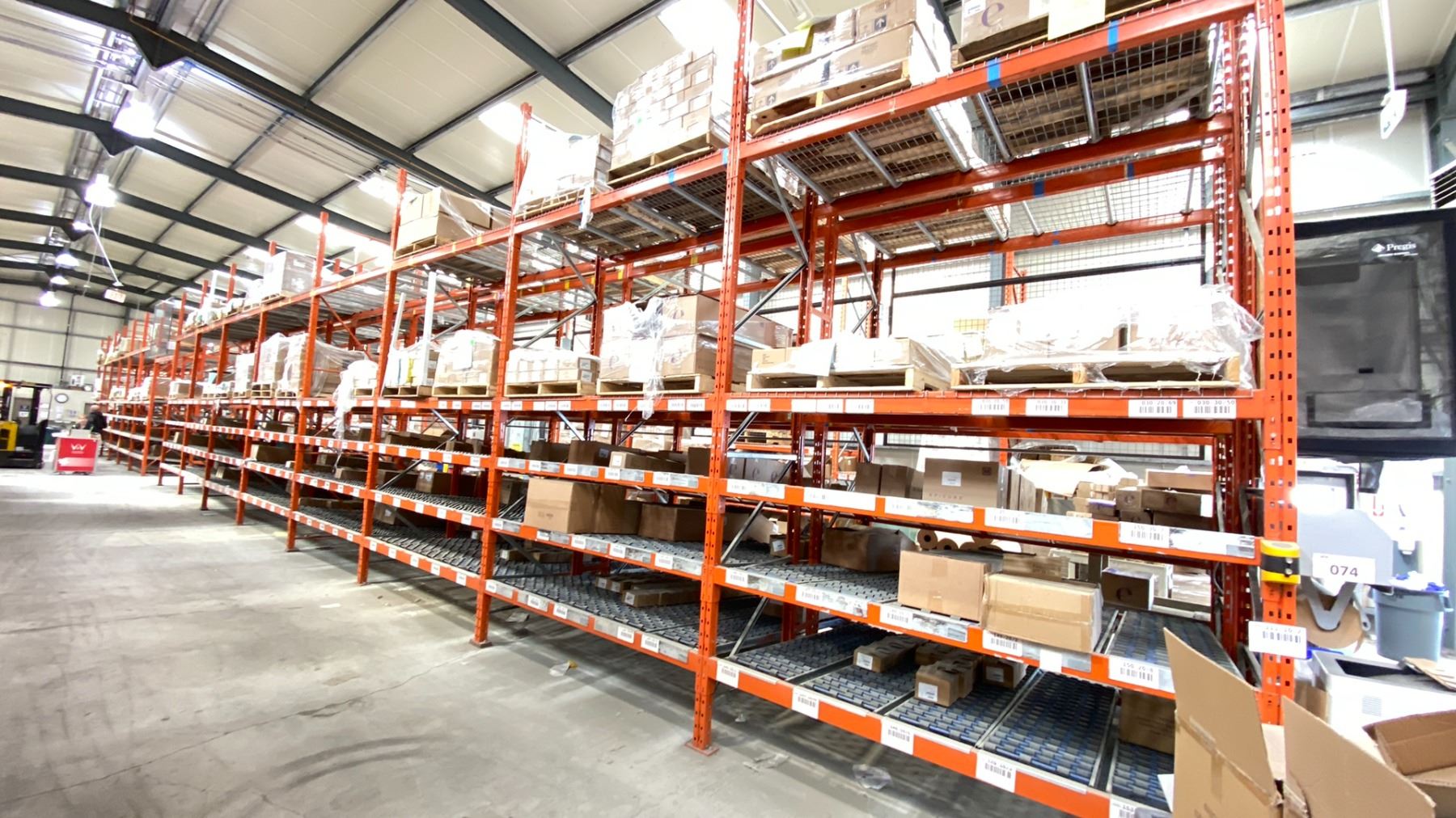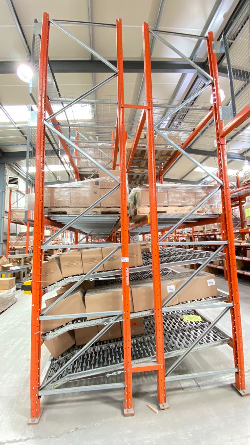 GROUP OF 16' HIGH BACK TO BACK RACKING. OVERALL 66' X 8' WITH BOX ROLLERS. INVENTORY INCLUDES 18 X 16' X 42" FRAMES, 110 X 8' BEAMS, 64 X 4' WIRE DECKING, 120 X 8' BOX ROLLERS, SAFETY CAGES INC. NO CONTENTS INCLUDED *DISMANTLING AND REMOVAL OF ALL RACKING WILL BE SCHEDULED AFTER THE AUCTION WITH THE BUYERS; REMOVAL PROCESS TO START JUNE 15*