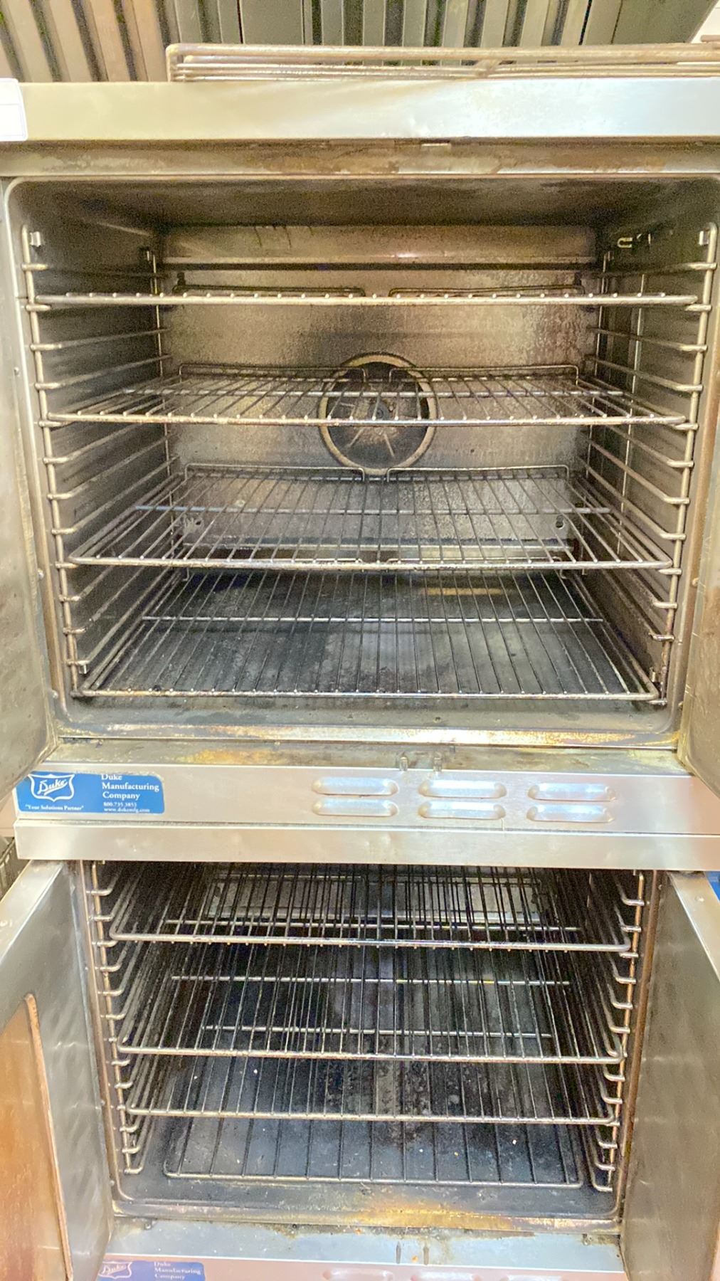 GROUP OF 2 DUKE GAS OVENS WITH METAL RACKING APPROX INSIDE COOKING 23" H X 29" W X 25" D