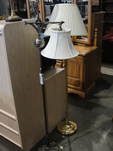 GROUP OF 2 FLOOR LAMPS; BRIDGE LAMP AND A BRASS LAMP