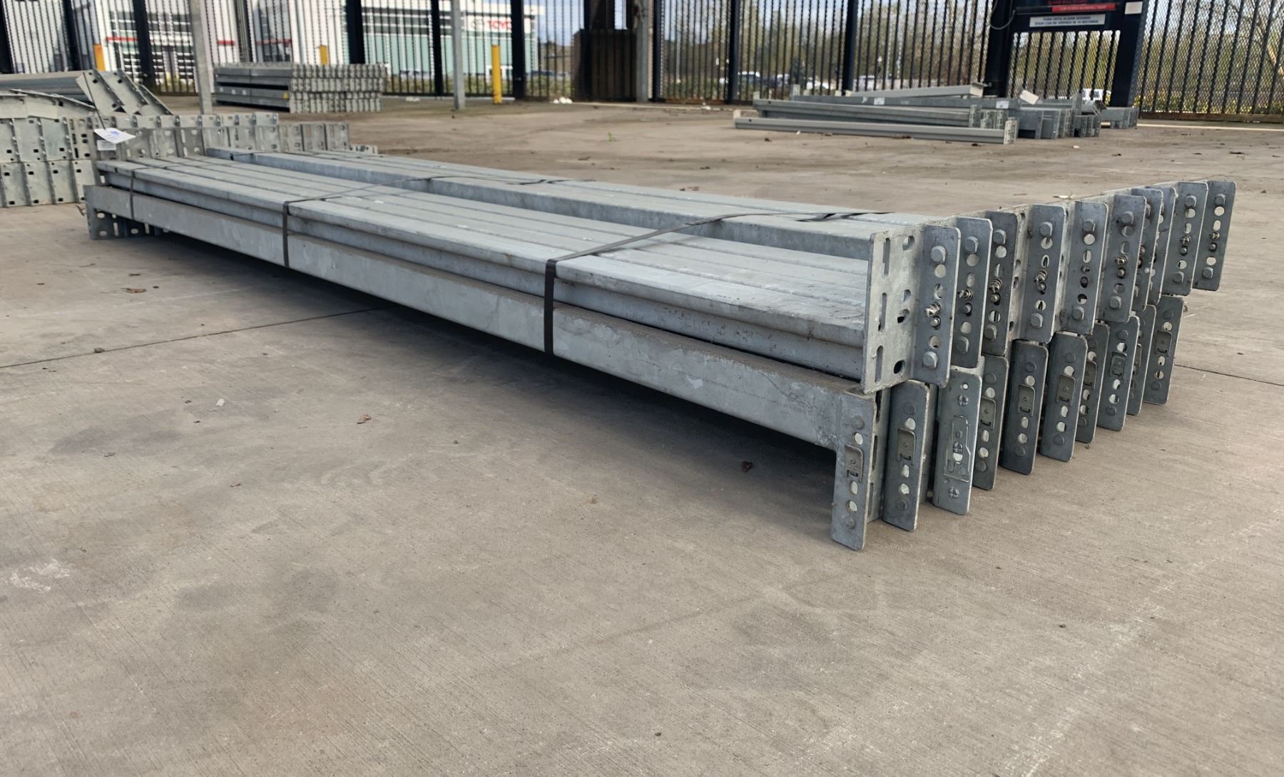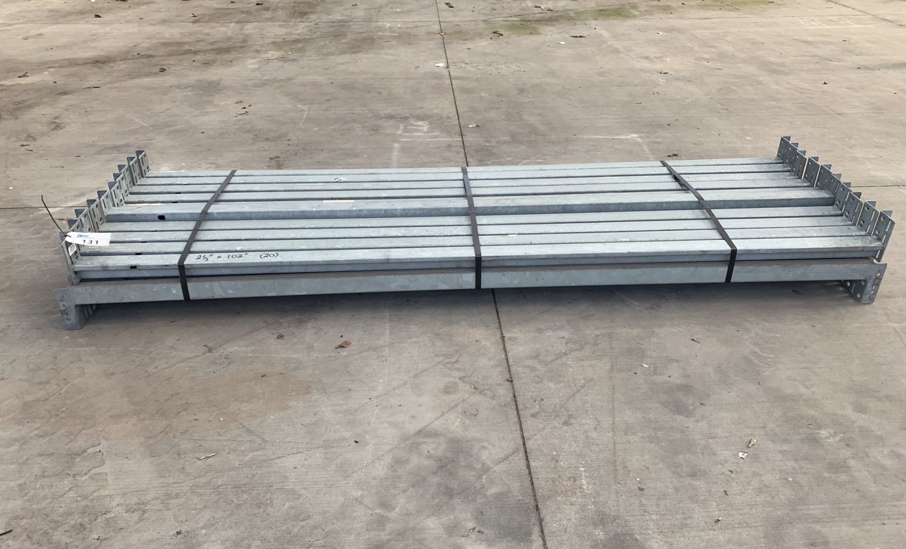 GROUP OF 20 GALVANIZED PALLET RACKING SIDE BEAMS 102" X 2.5"