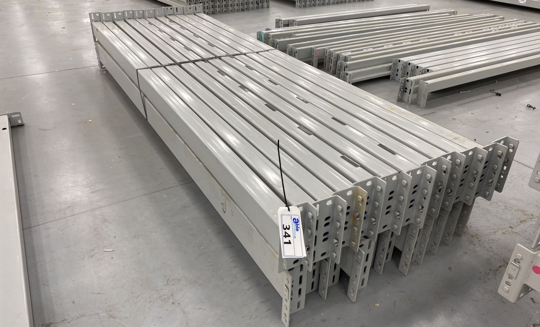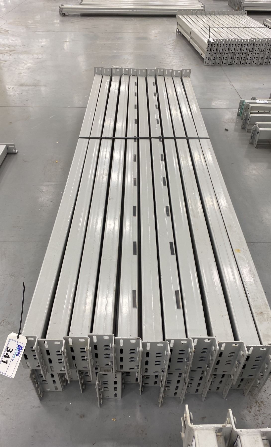 GROUP OF 22 GREY INDUSTRIAL PALLET RACKING SIDE BEAMS 102" X 5.5"