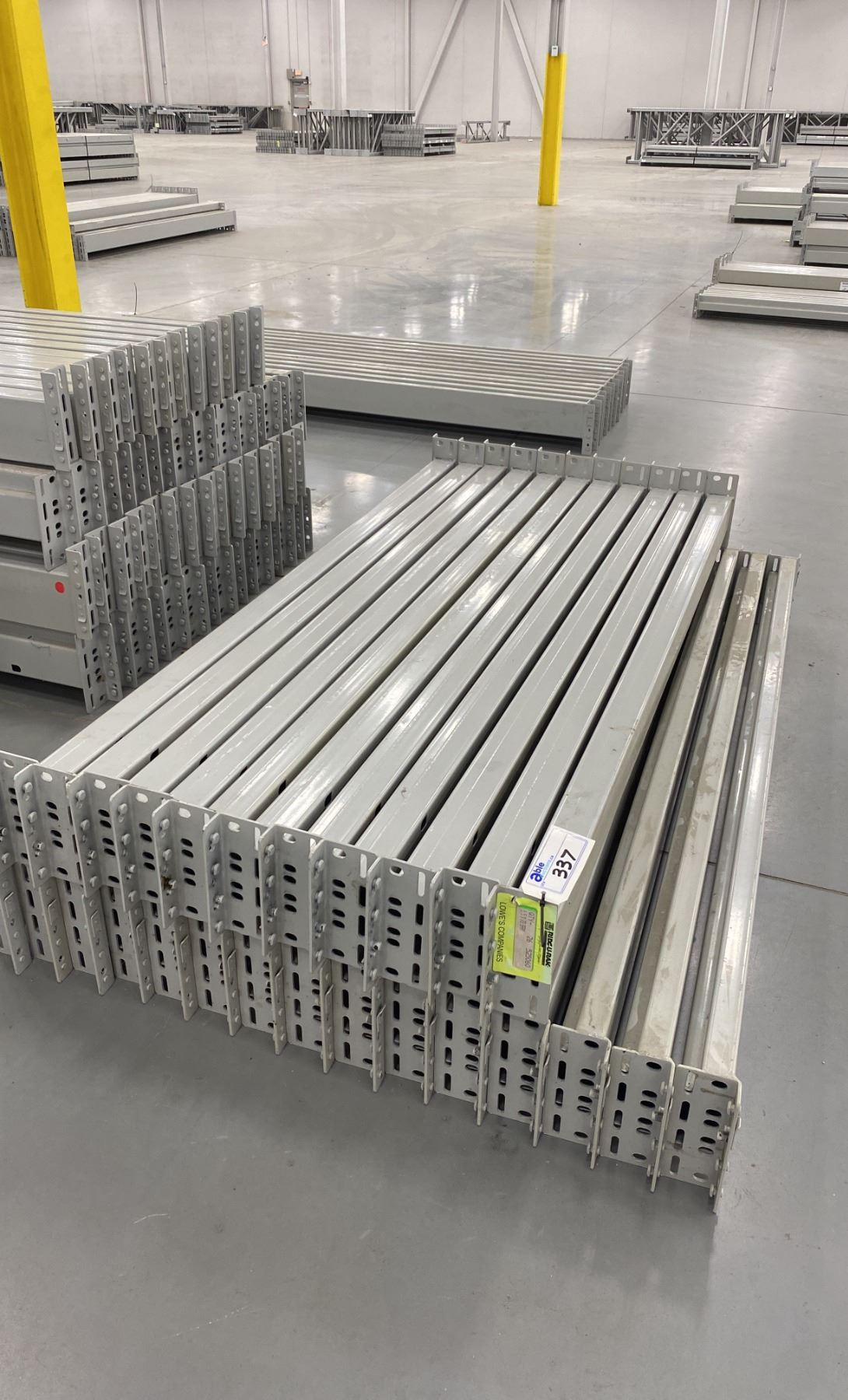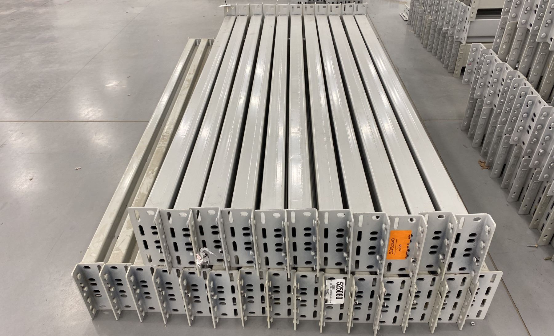 GROUP OF 26 GREY INDUSTRIAL PALLET RACKING SIDE BEAMS 73" X 5.5"