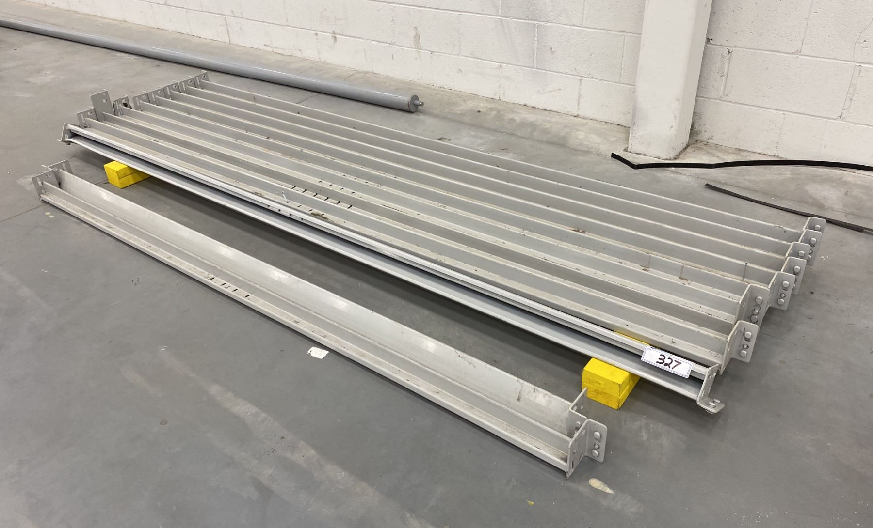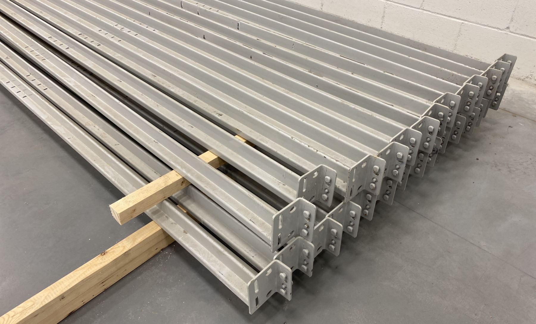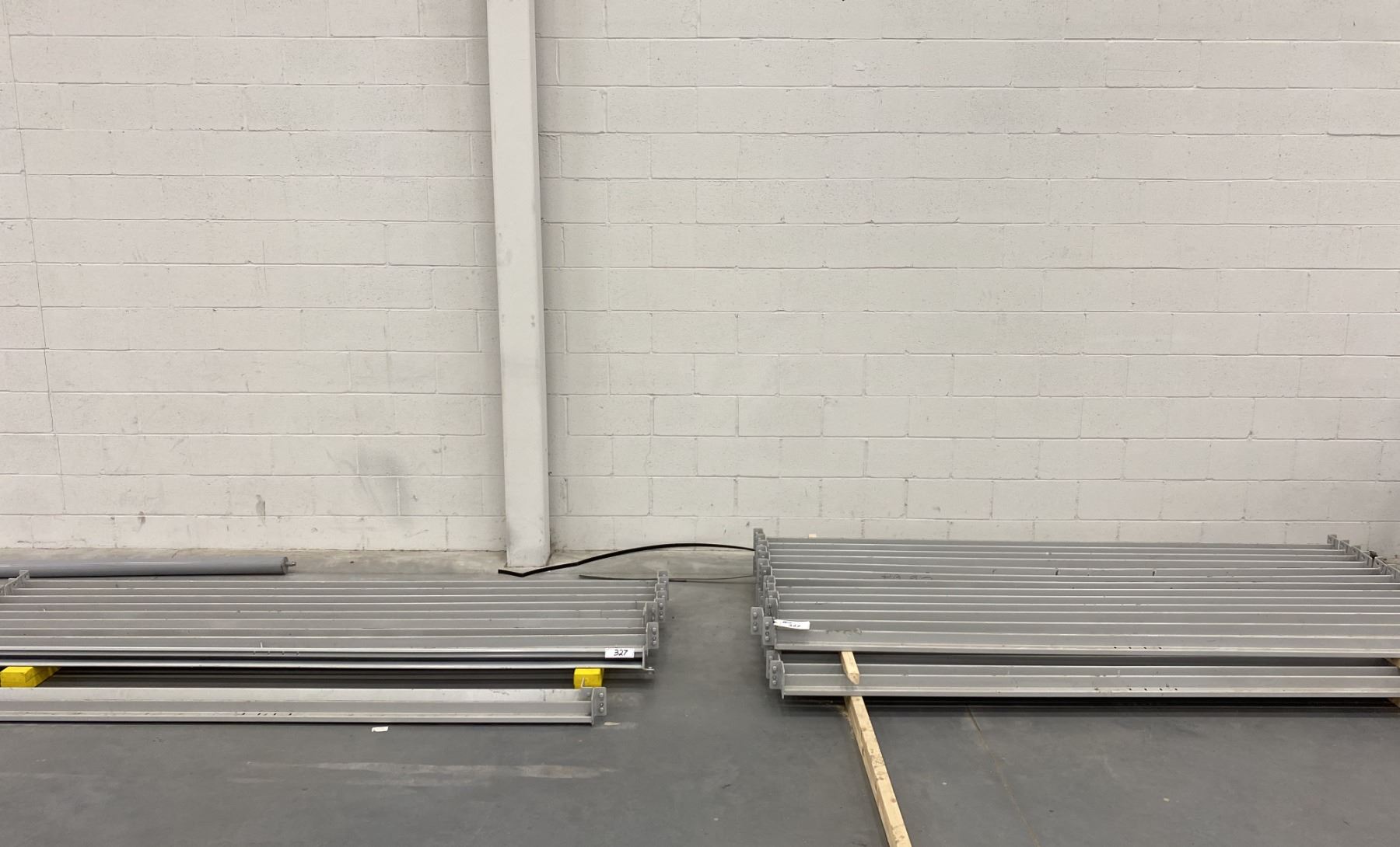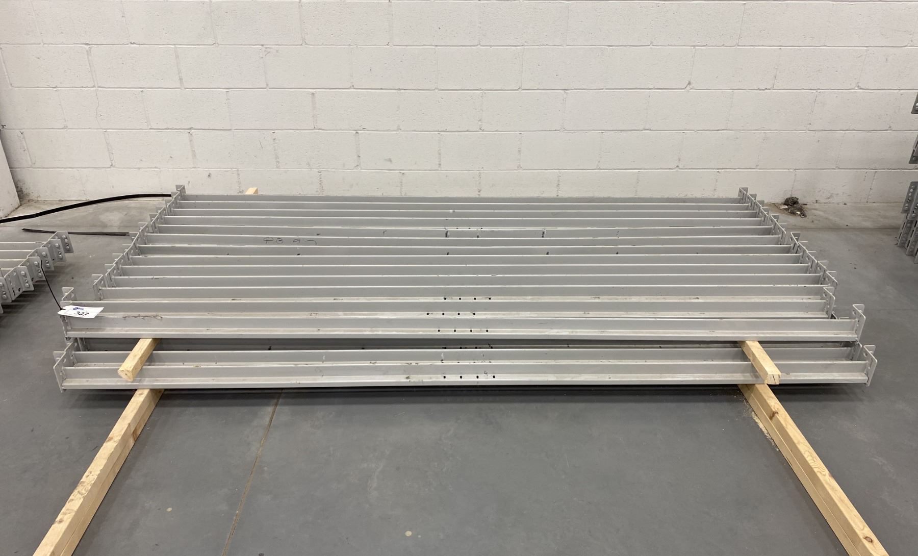 GROUP OF 28 GREY INDUSTRIAL PALLET RACKING SIDE BEAMS 97" X 3", (9) 102" X 3" AND (2) 84" X 3"