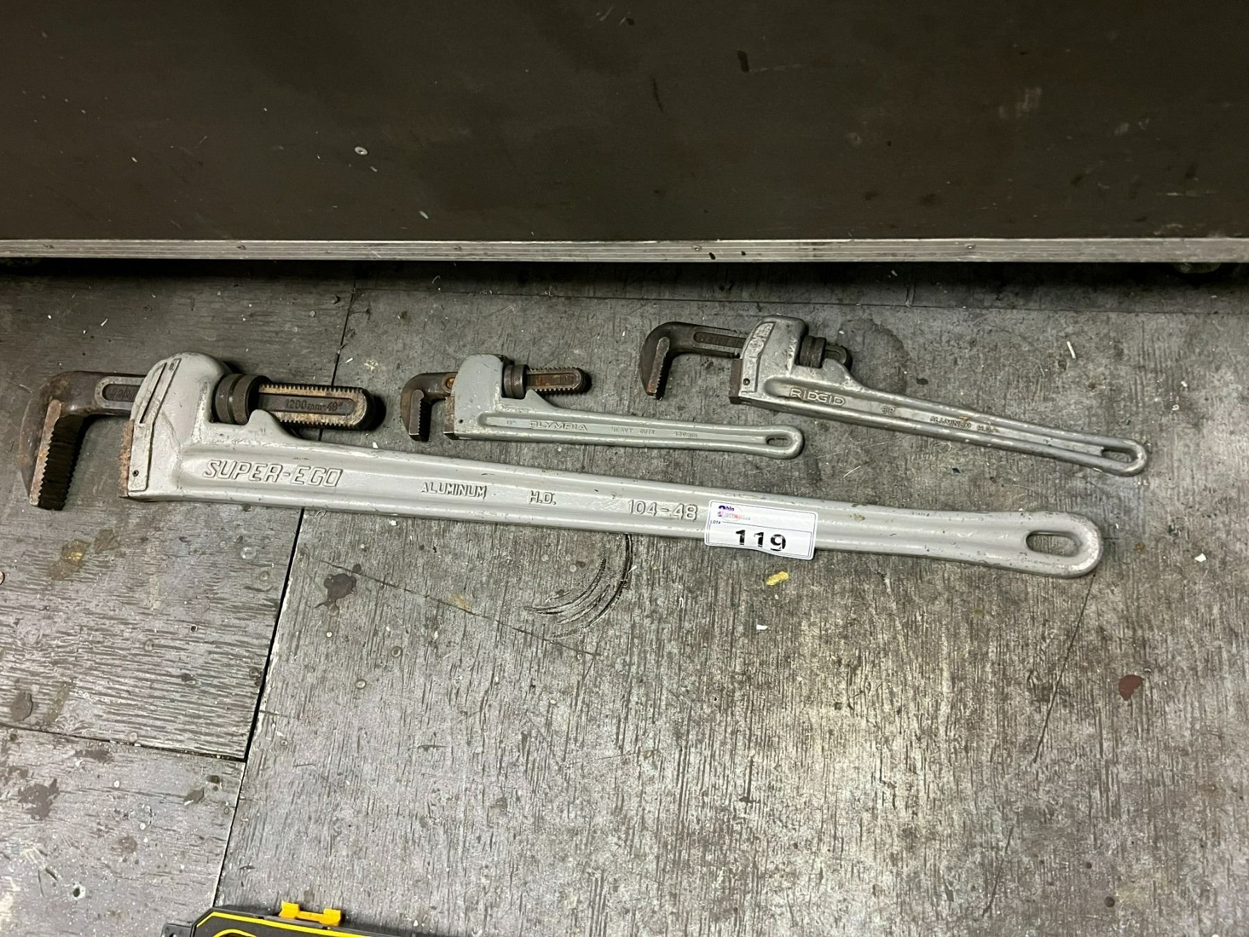 GROUP OF 3 ALUMINIUM PIPE WRENCHES- INCLUDES HUGE SUPER-EGO H.D. 104 - 48