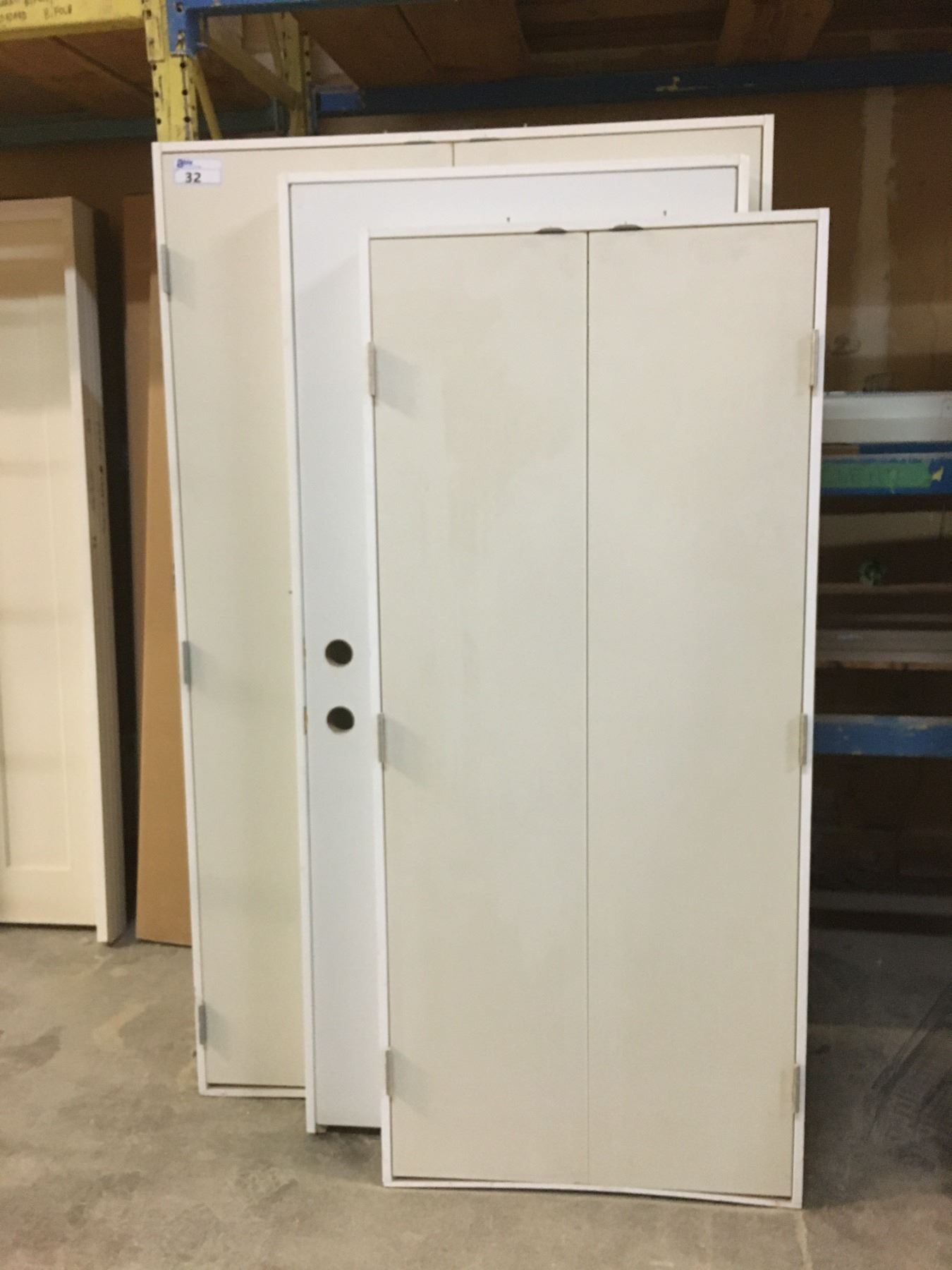 GROUP OF 3 ASSORTED SIZE WHITE DOORS WITH FRAMES