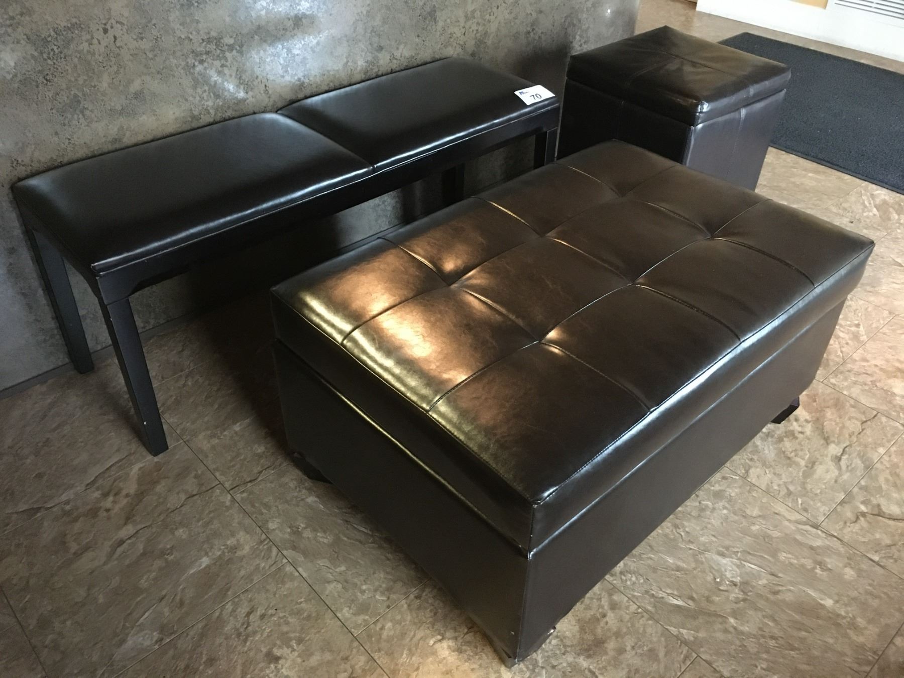 GROUP OF 3 CHOCOLATE BROWN LEATHER BENCHES/FOOTSTOOLS