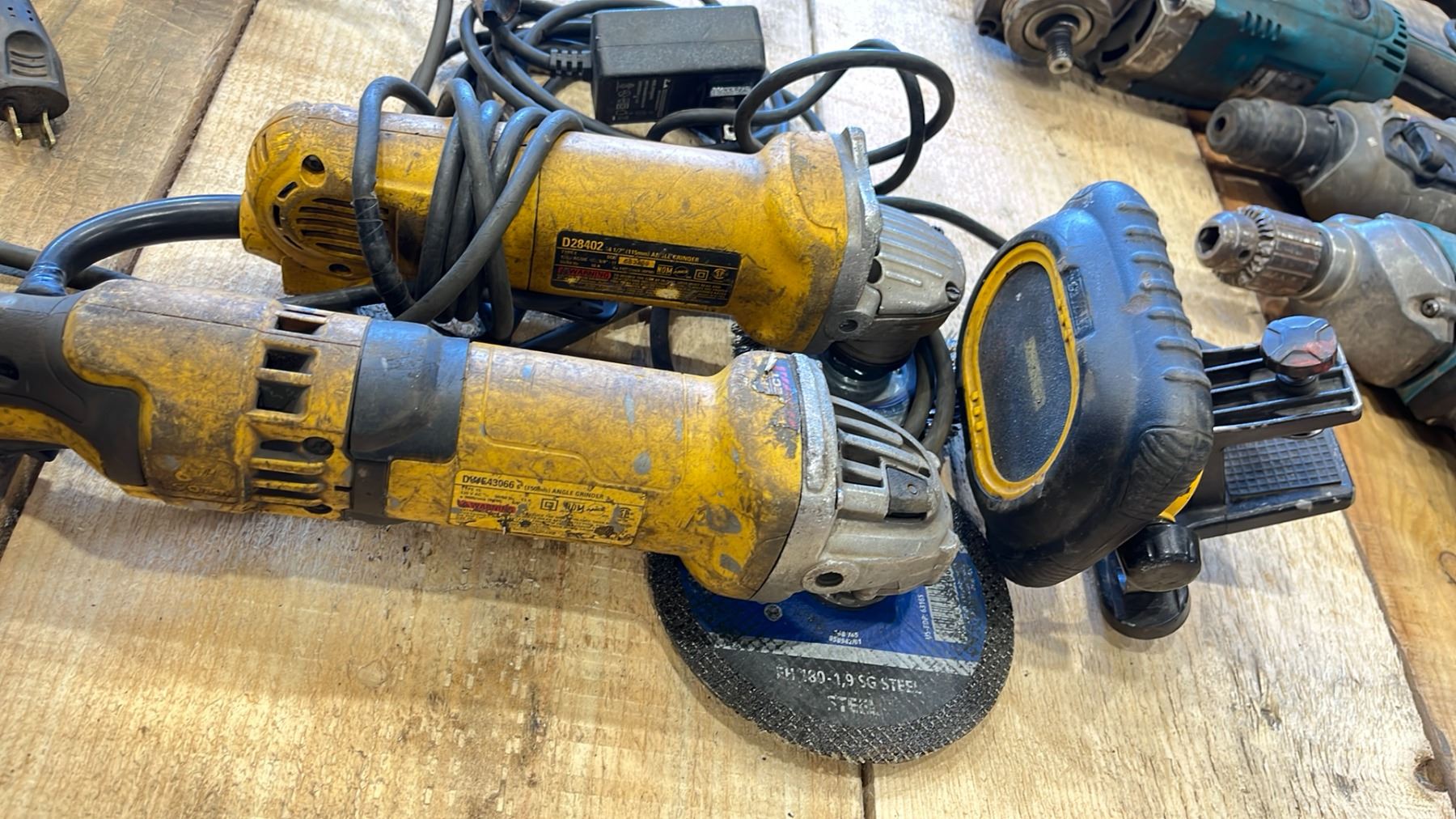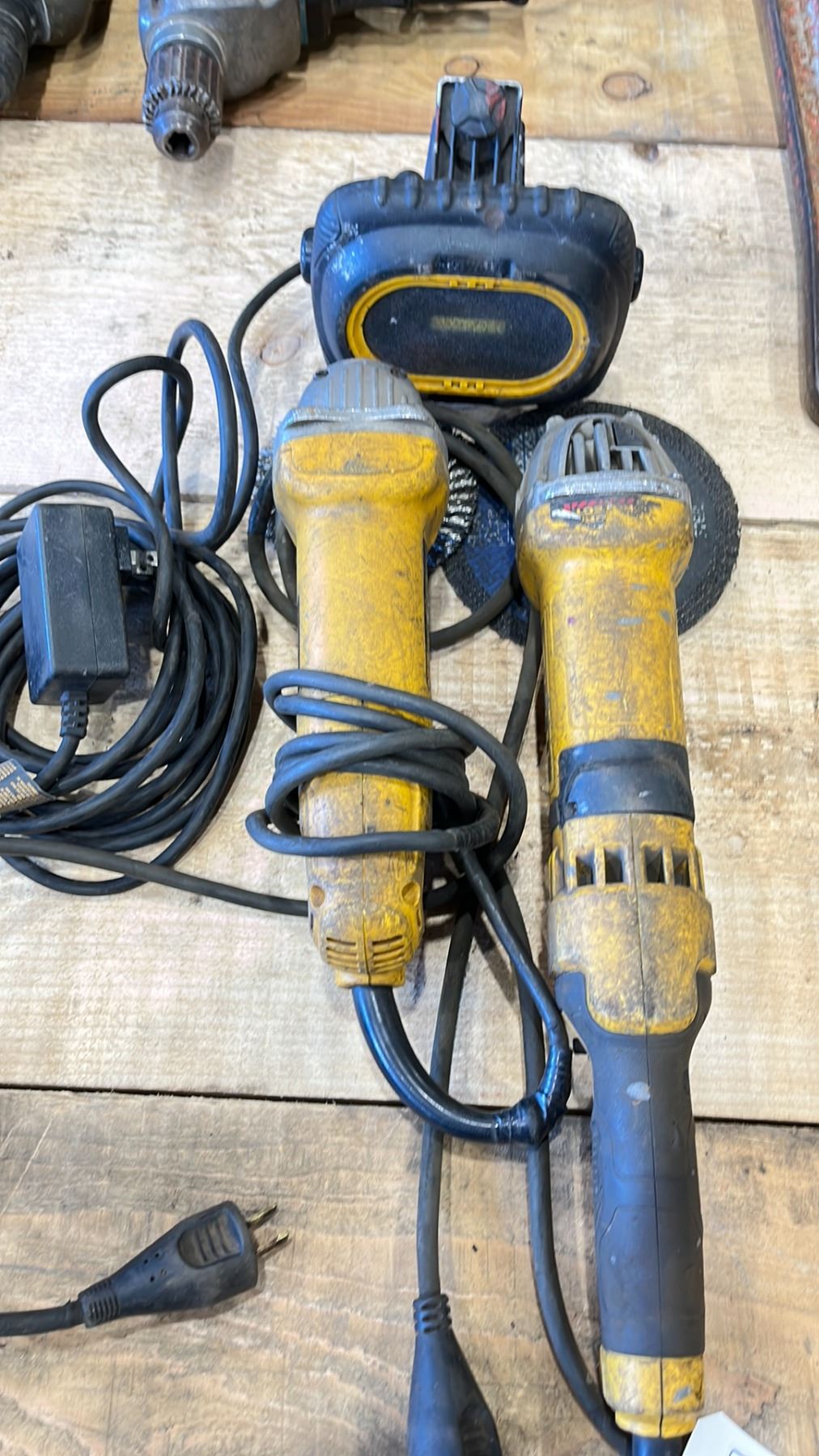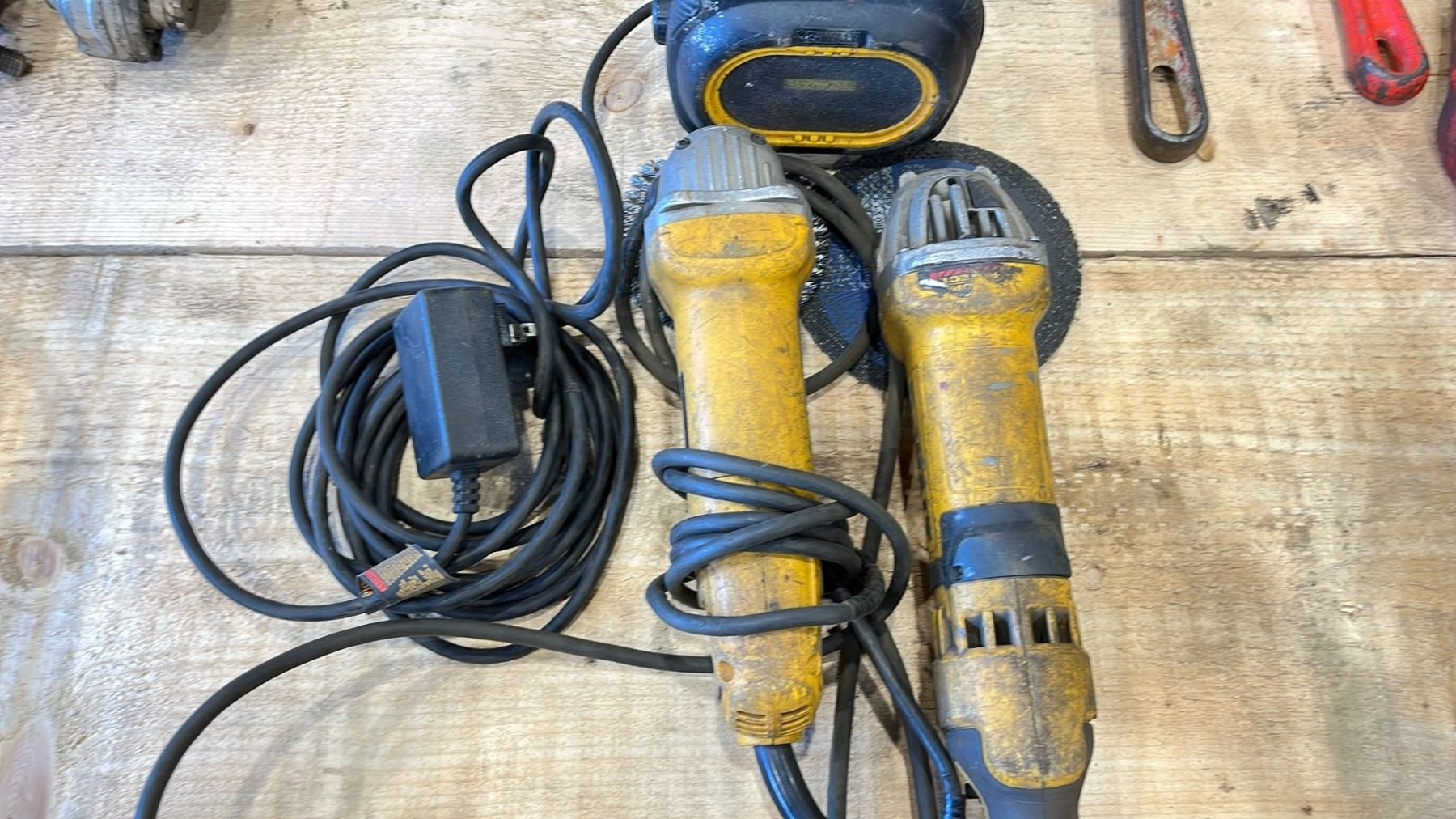 GROUP OF 3 DEWALT ELECTRIC POWER TOOLS, 2 GRINDERS, 1 LIGHT