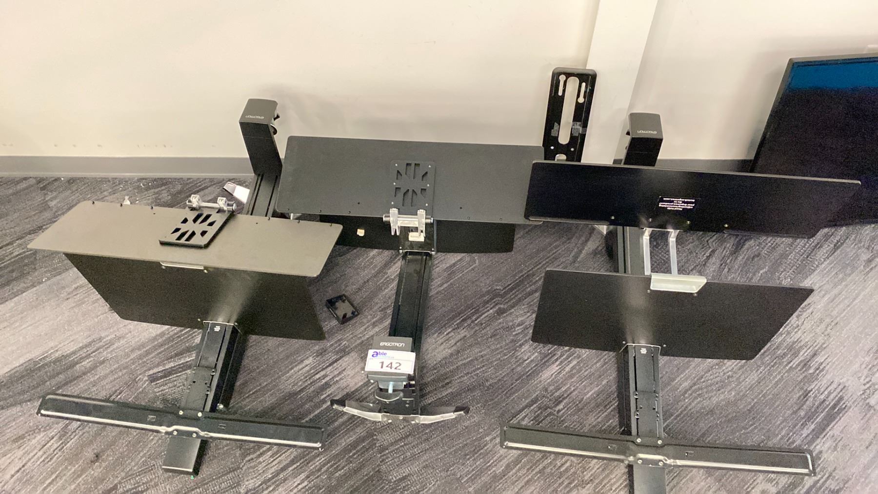 GROUP OF 3 ERGOTRON DESK MOUNT DOUBLE MONITOR STAND