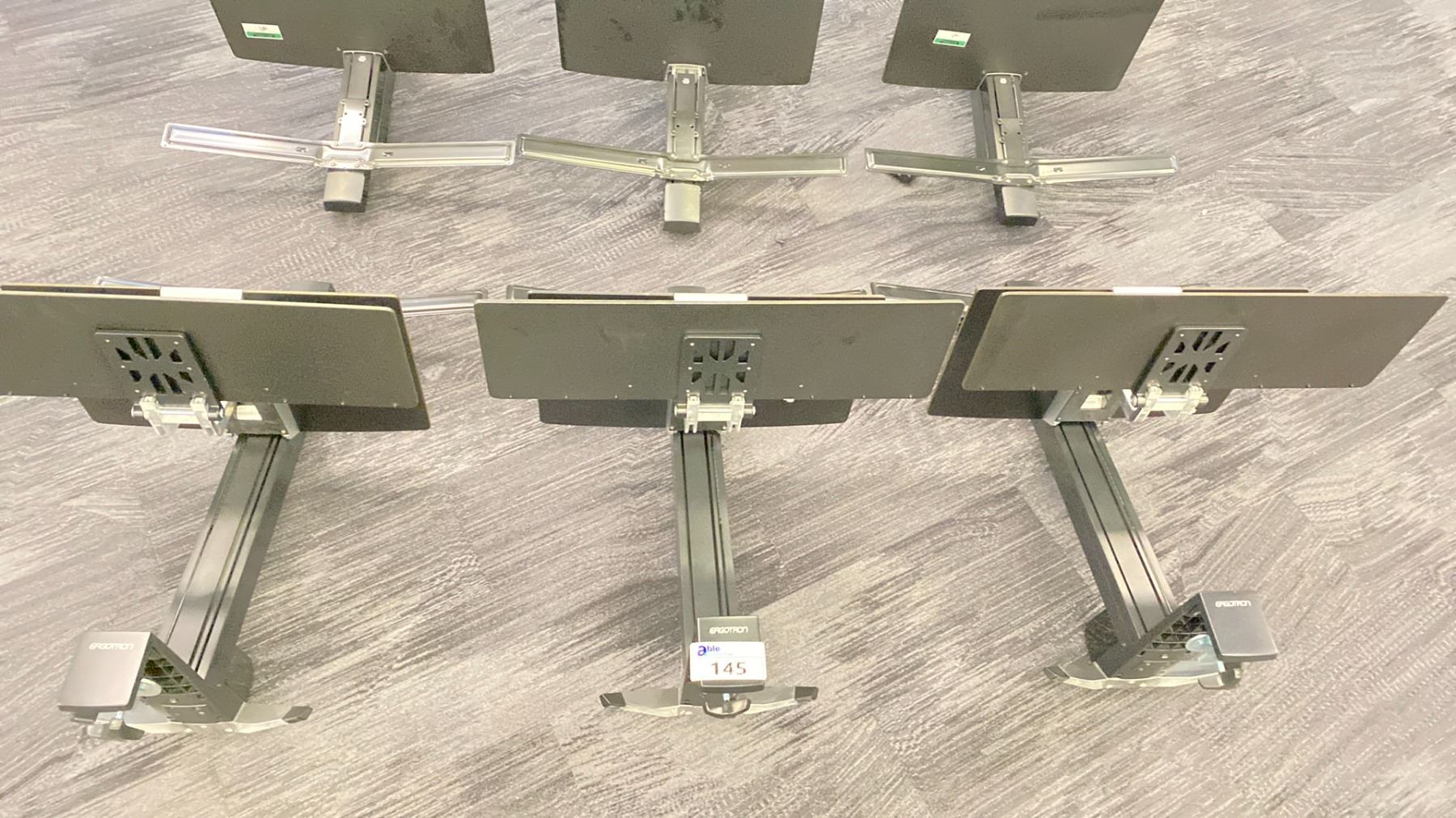 GROUP OF 3 ERGOTRON DESK MOUNT DOUBLE MONITOR STAND