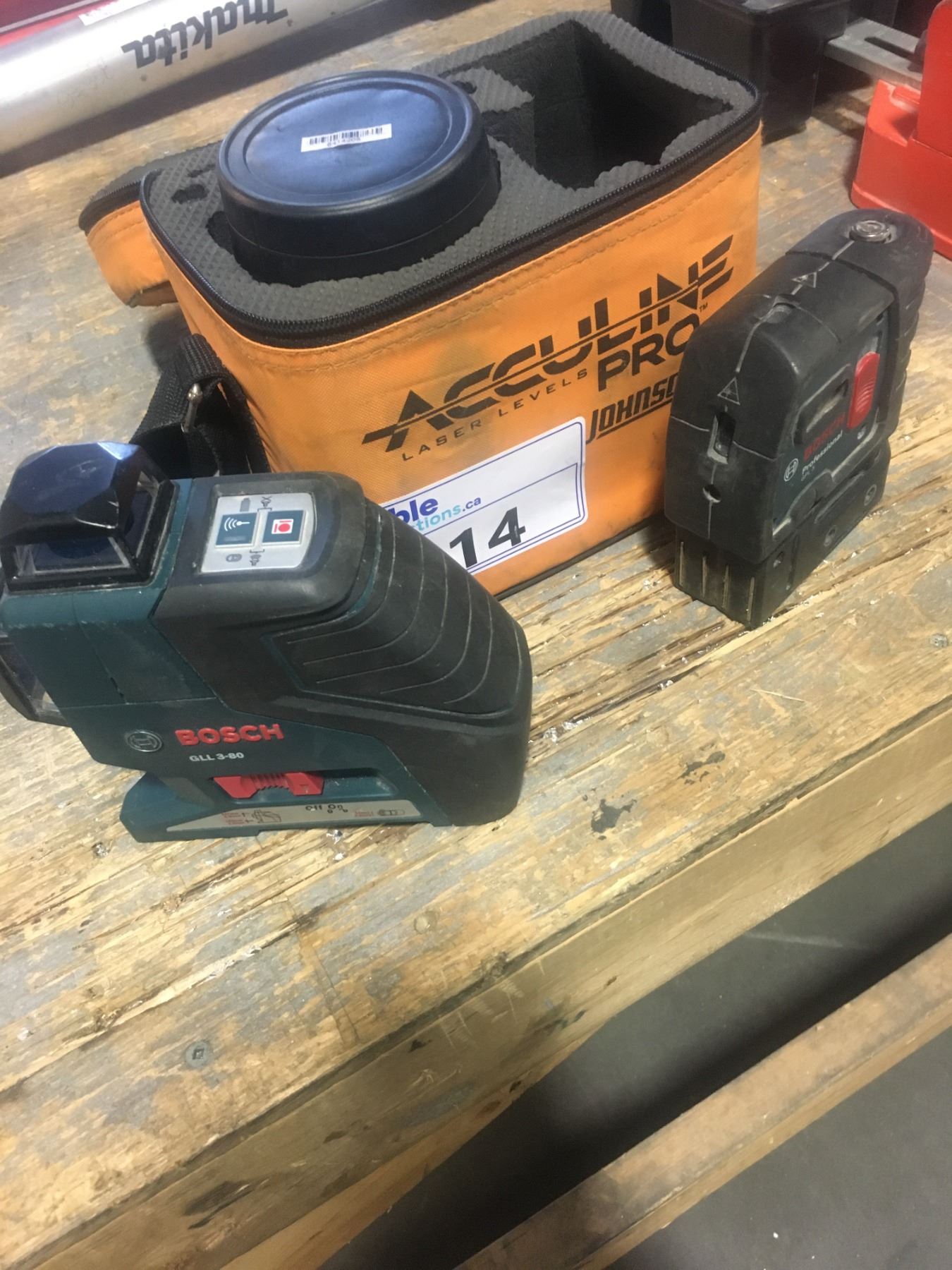 GROUP OF 3 LASER LEVELS- 1 ACCULINE PRO AND 2 BOSCH
