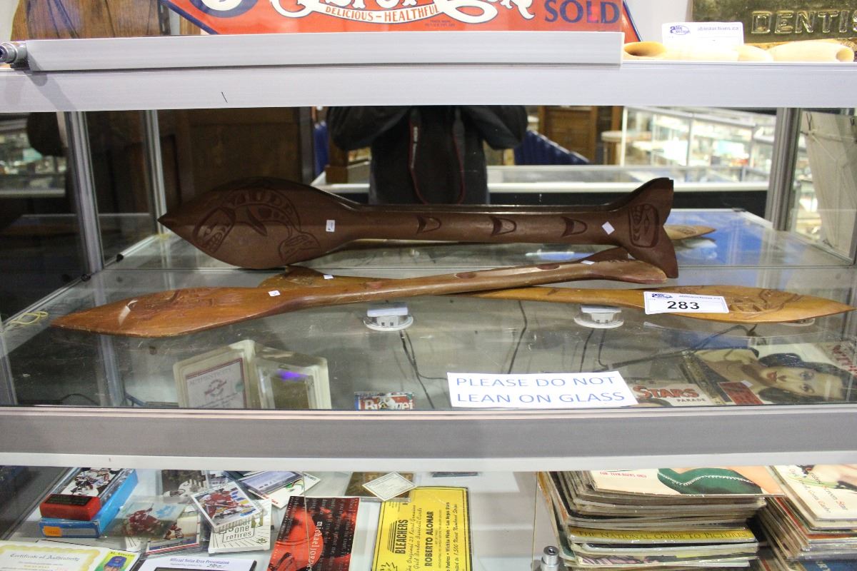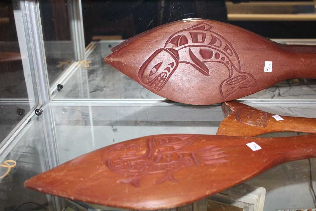 GROUP OF 3 WEST COAST NATIVE WOOD CARVED PADDLES