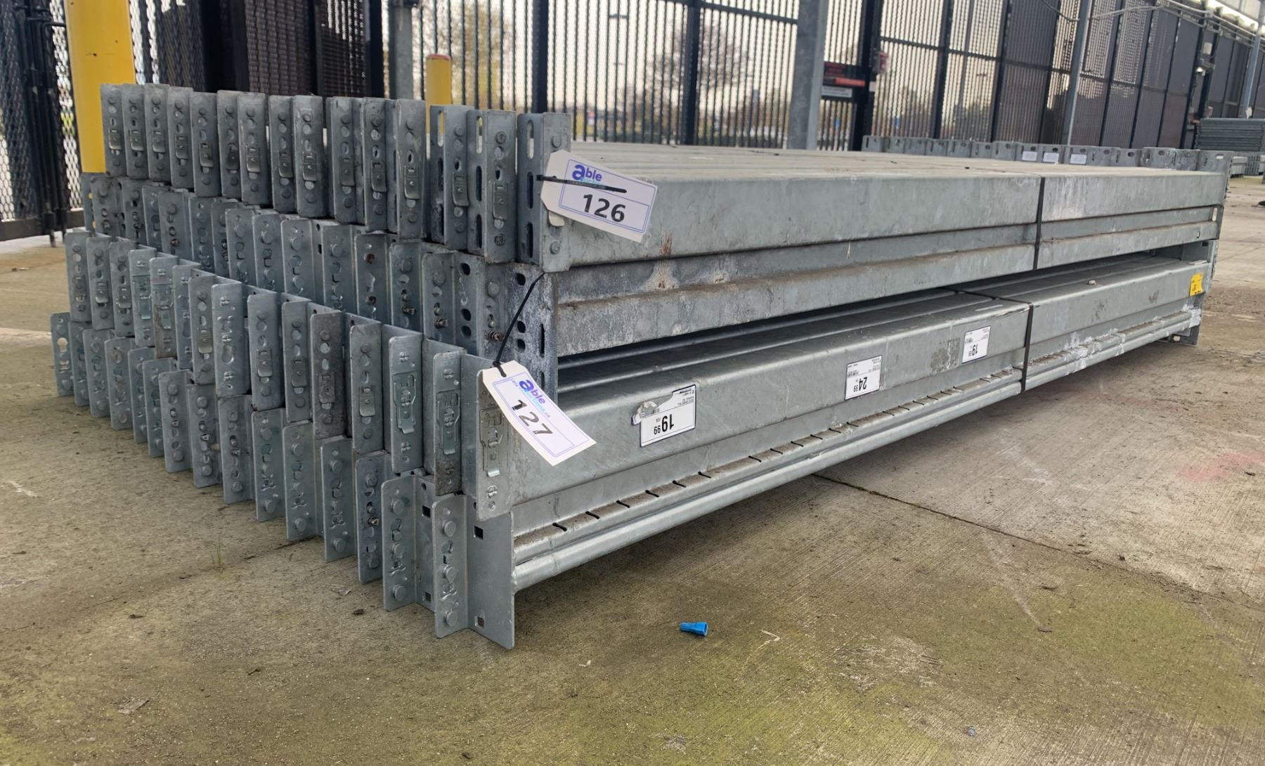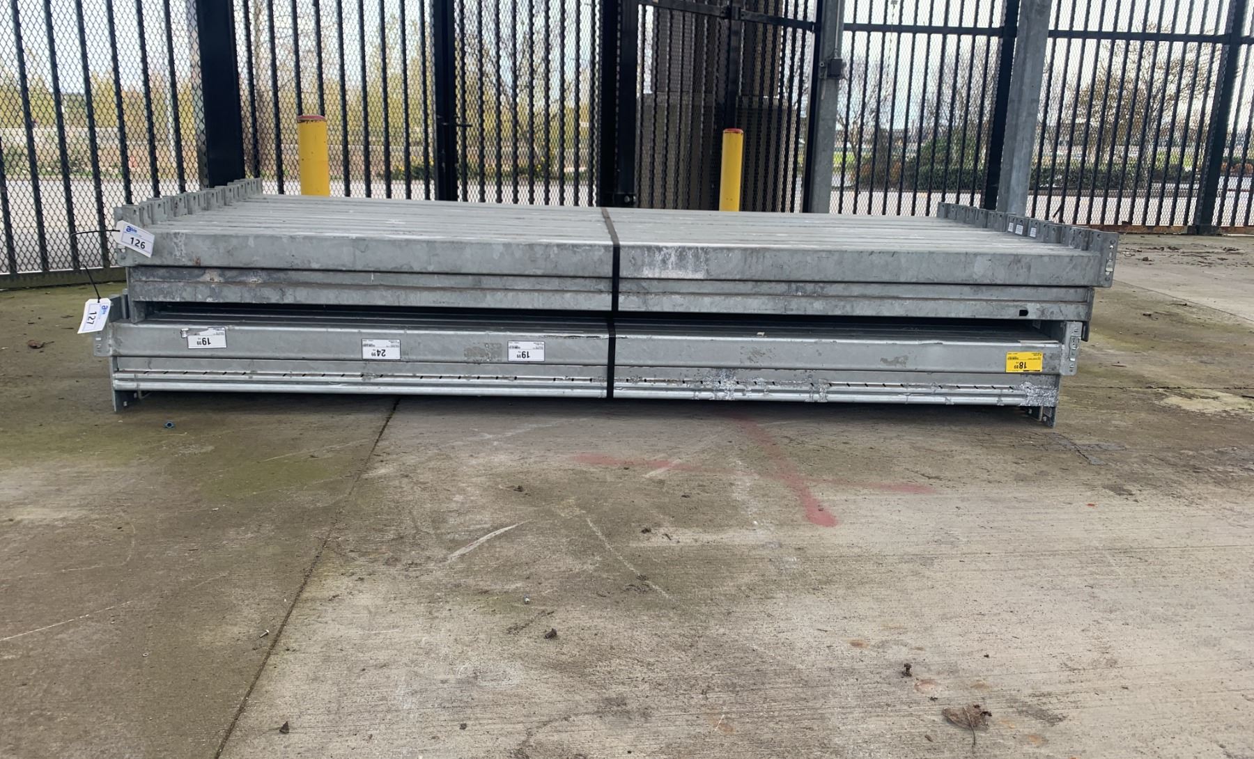 GROUP OF 30 GALVANIZED PALLET RACKING SIDE BEAMS 102  X 3.5