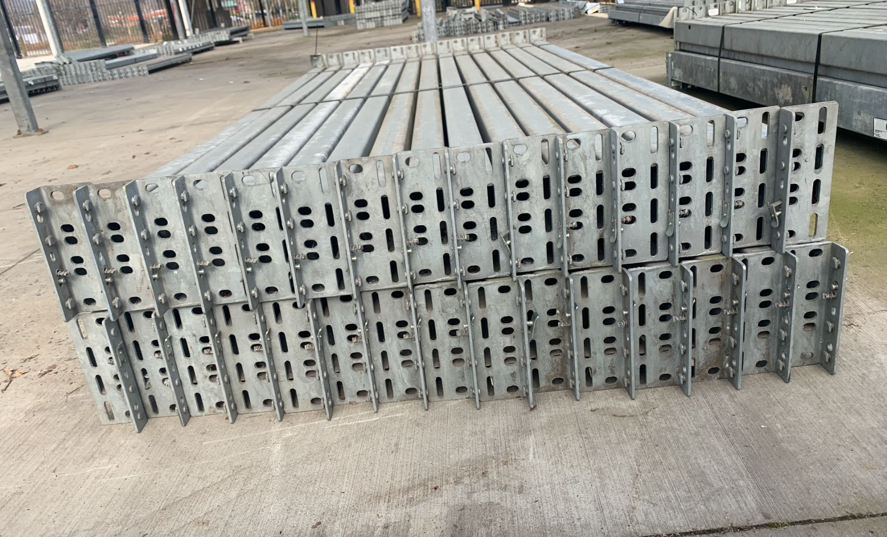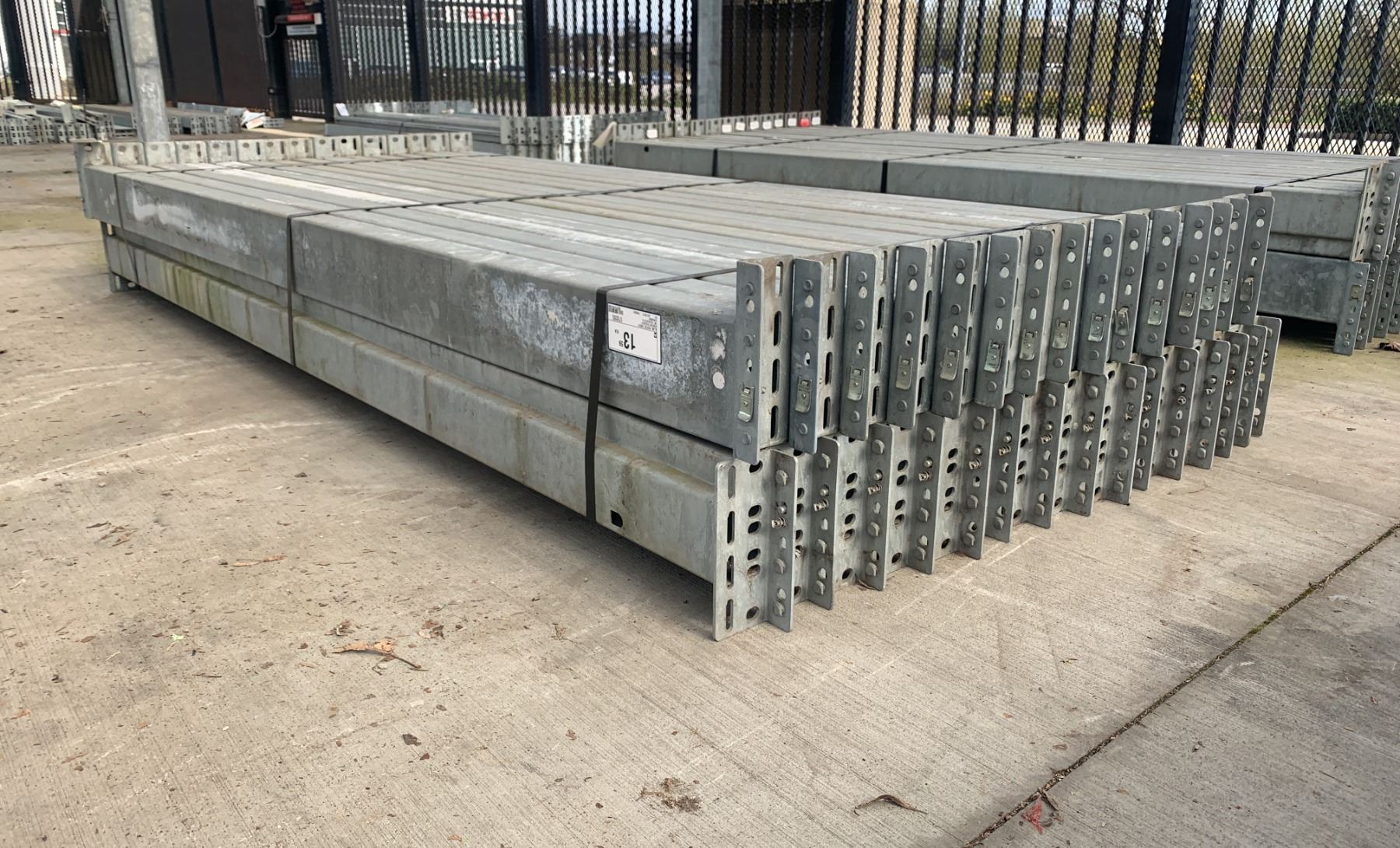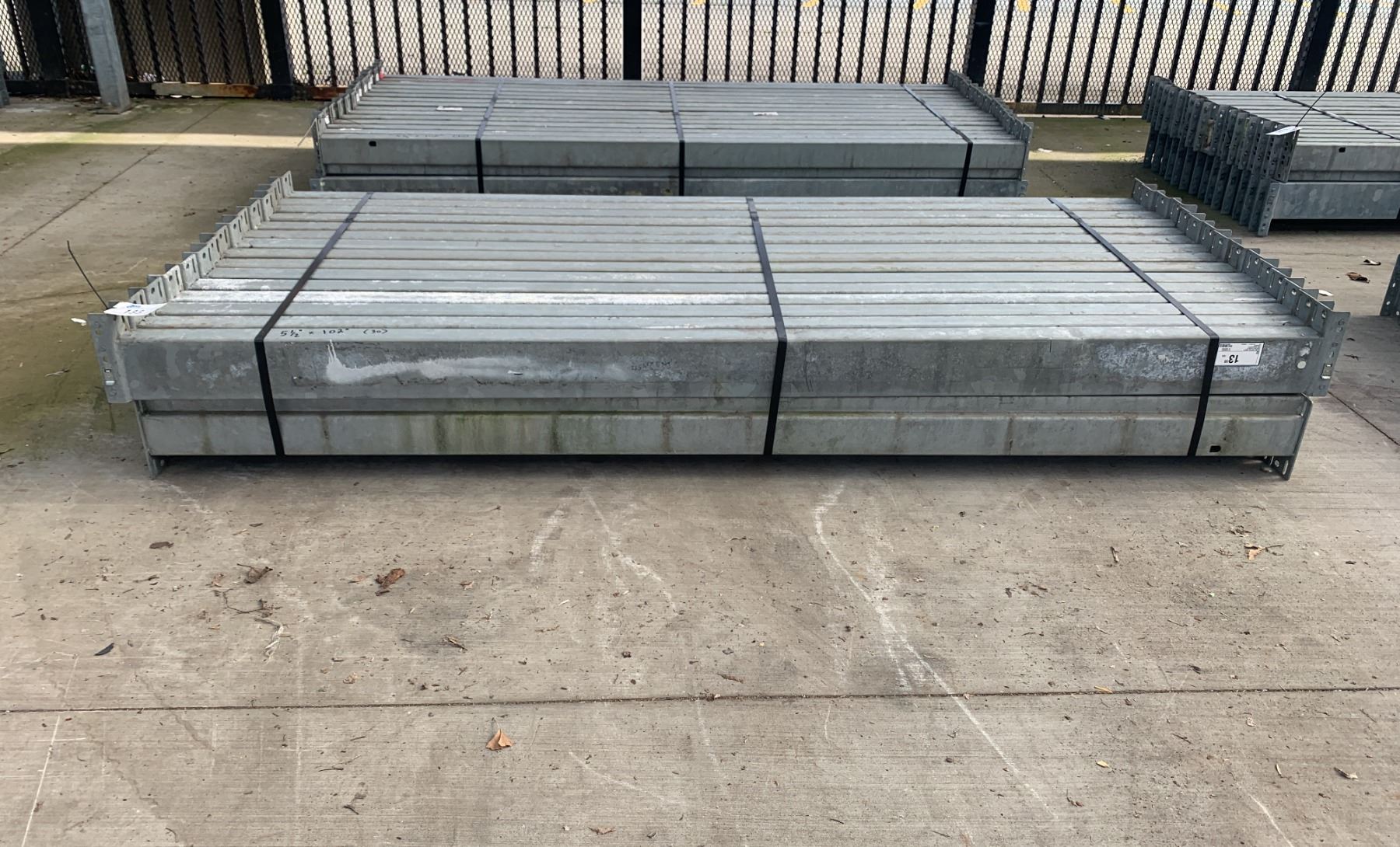 GROUP OF 30 GALVANIZED PALLET RACKING SIDE BEAMS 102" X 5.5"