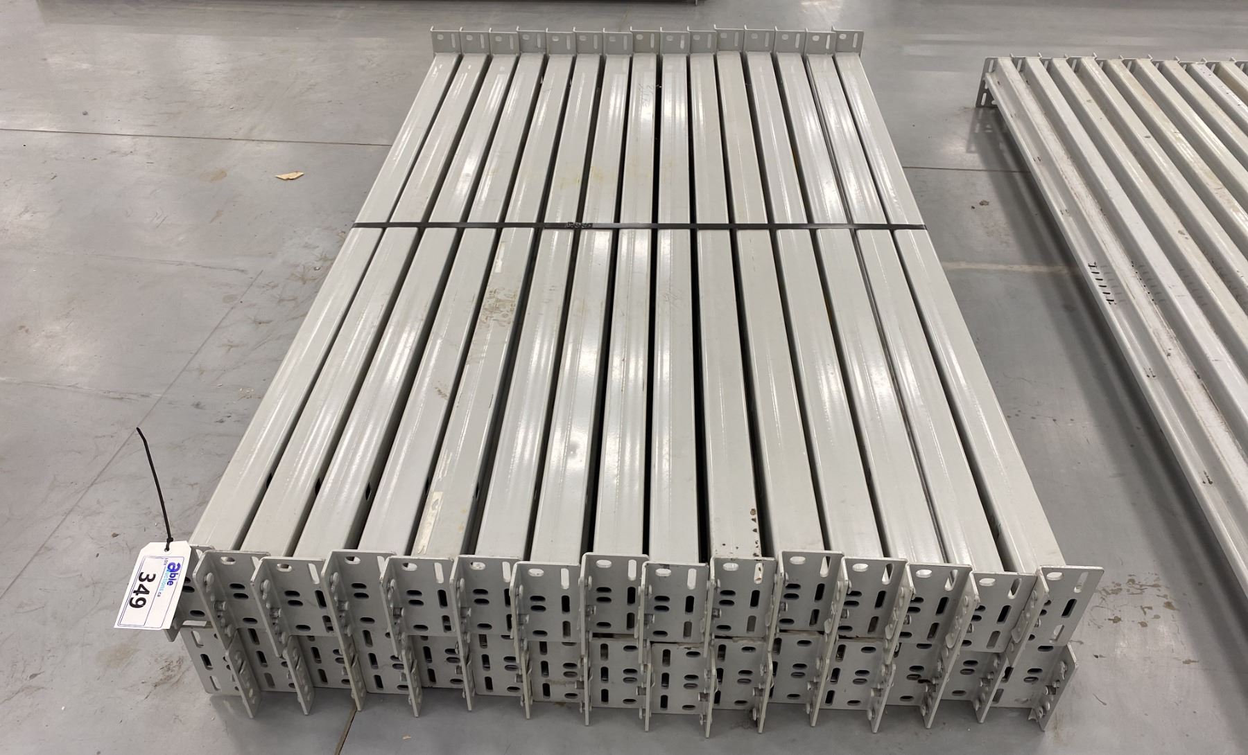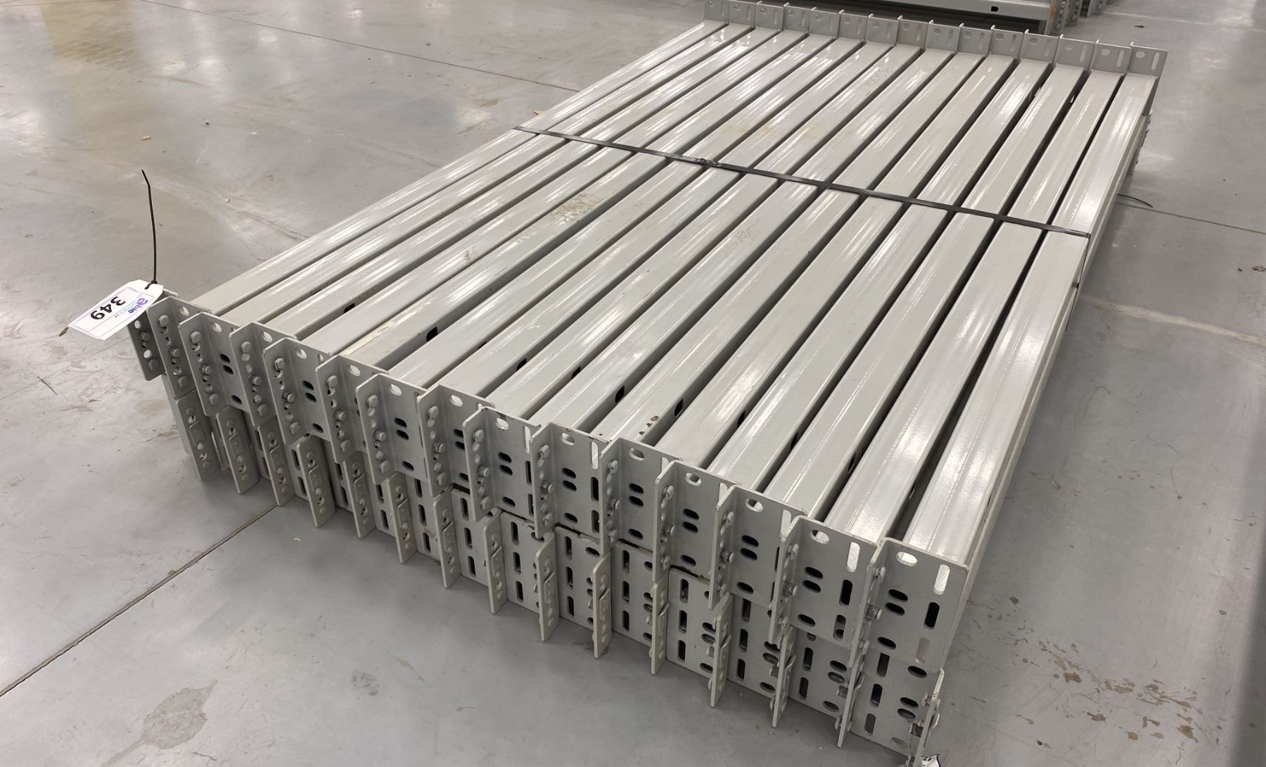 GROUP OF 30 GREY INDUSTRIAL PALLET RACKING SIDE BEAMS 73" X 3.5"