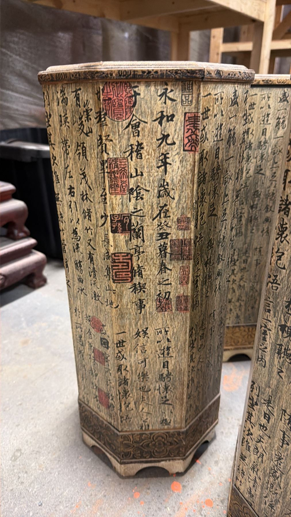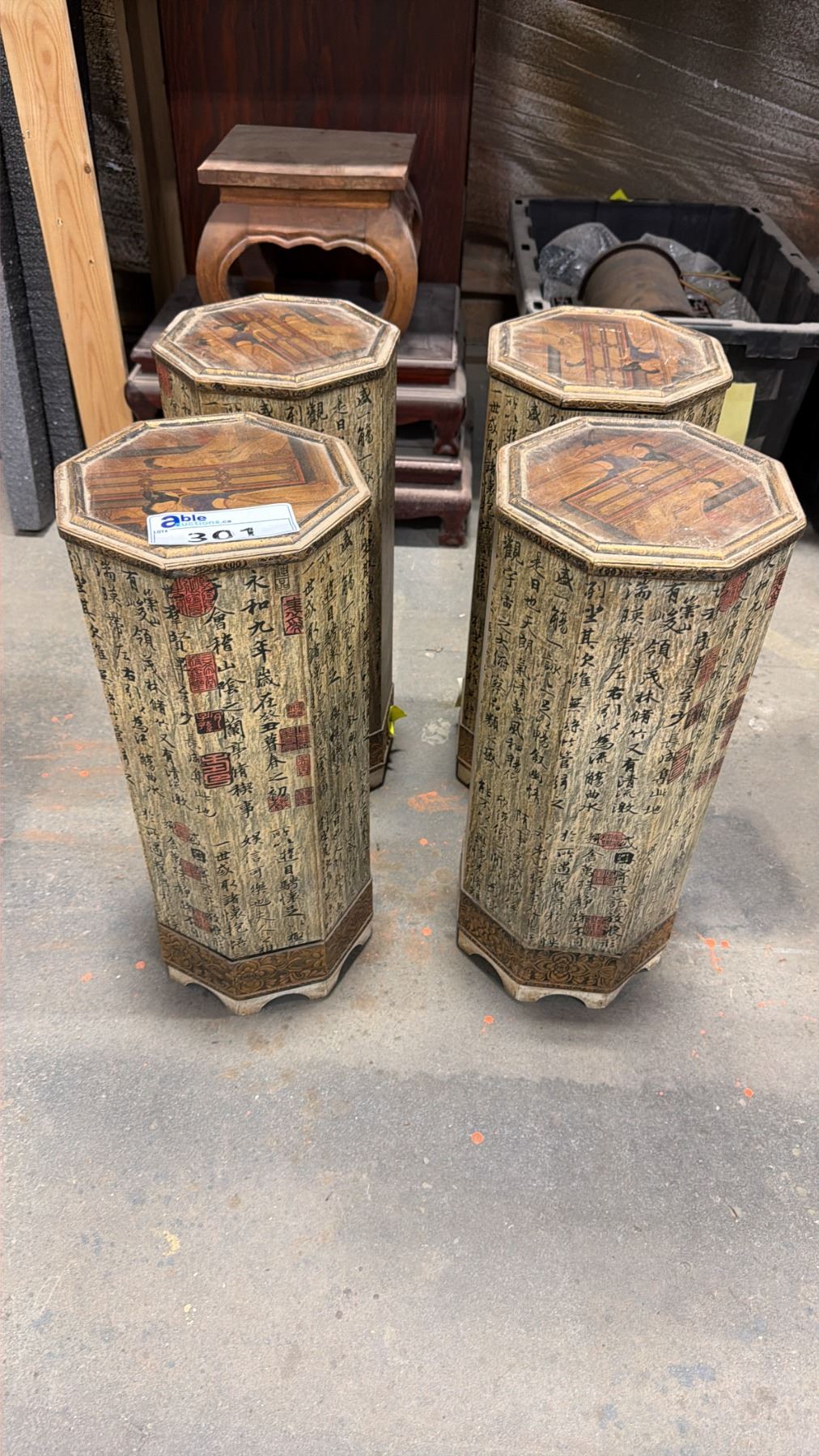 GROUP OF 4 ASIAN MOTIF SMALL WOODEN OCTAGON PLANT STANDS