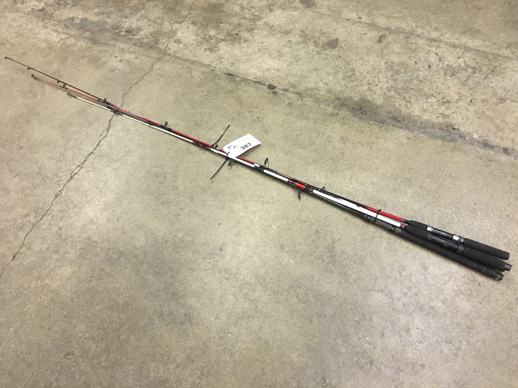 GROUP OF 4 ASSORTED FISHING RODS OF VARIOUS LENGTHS AND TYPES
