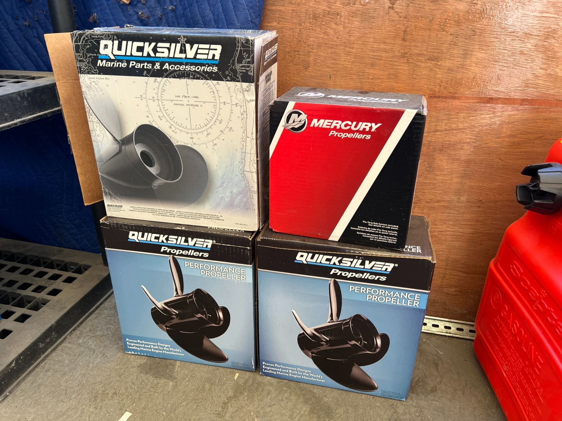 GROUP OF 4 ASSORTED OUTBOARD PROPELLERS-QUICKSILVER & MERCURY