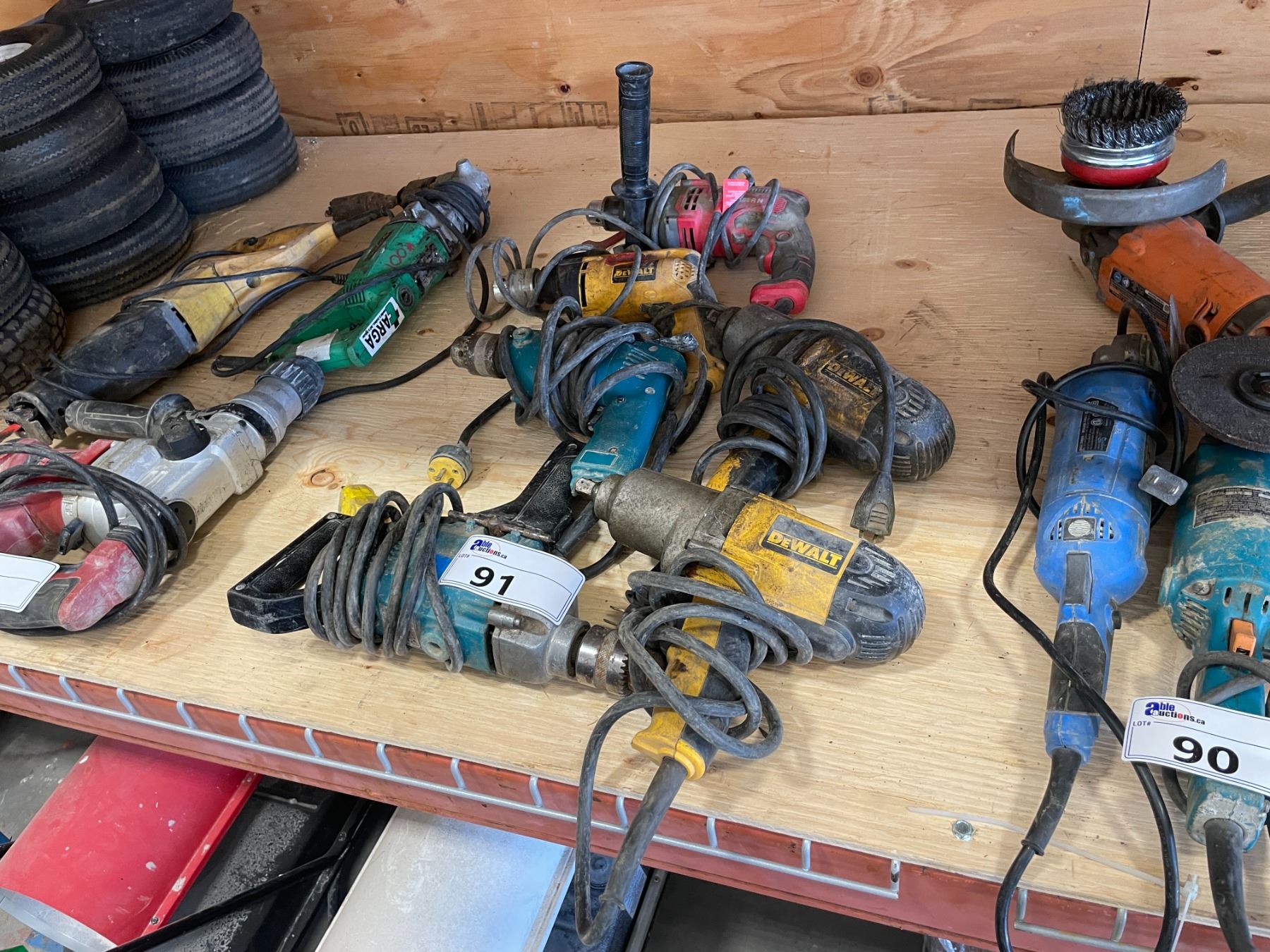 GROUP OF 4 ASSORTED POWER DRILLS (2 MAKITA, 1 DEWALT, 1 CRAFTSMAN) &2 DEWALT 1/2" ELECTRIC IMPACT WRENCHES