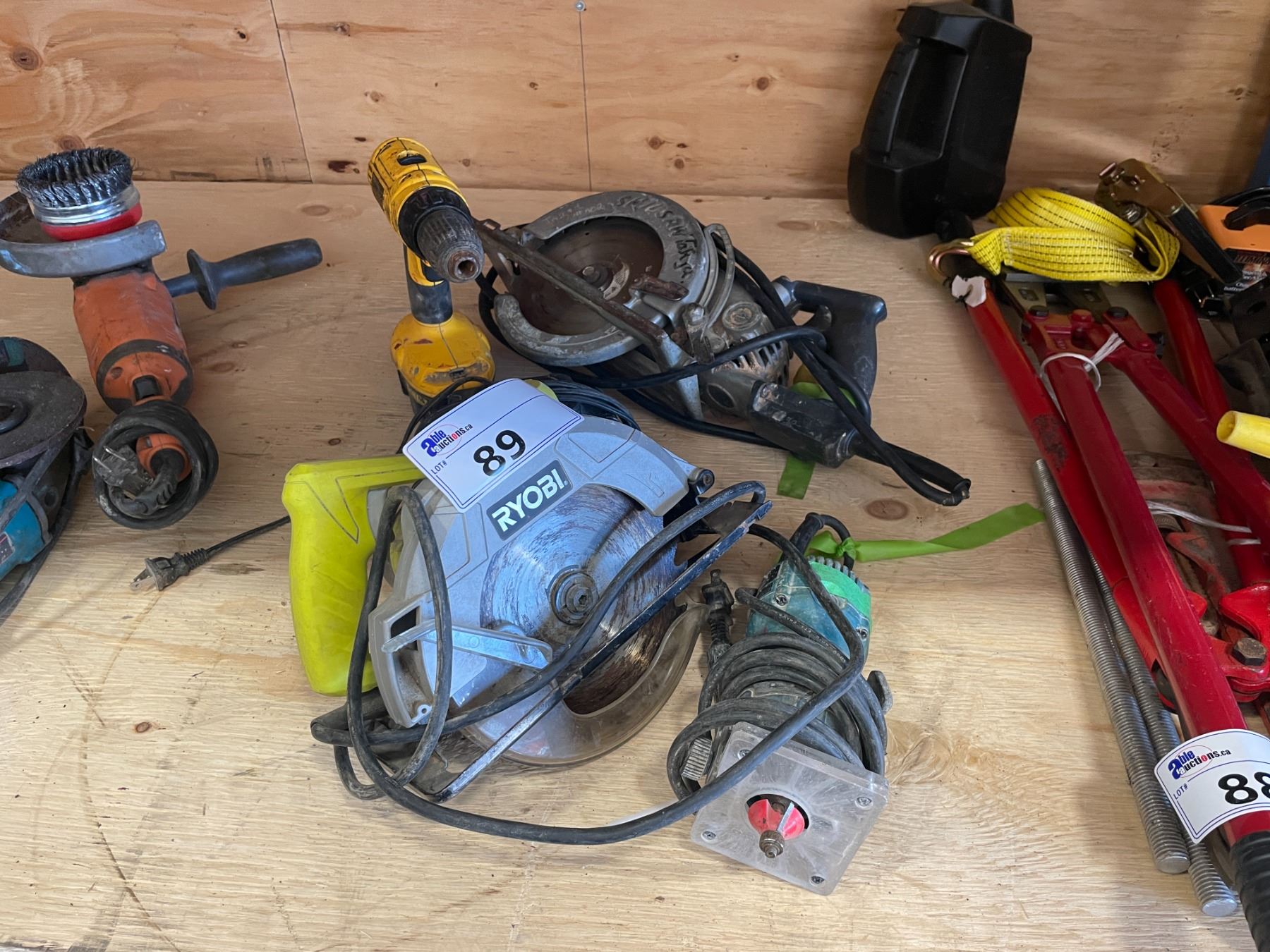 GROUP OF 4 ASSORTED POWER TOOLS-2 SKILL SAWS, DEWALT CORDLESS DRILL & MAKITA ROUTER
