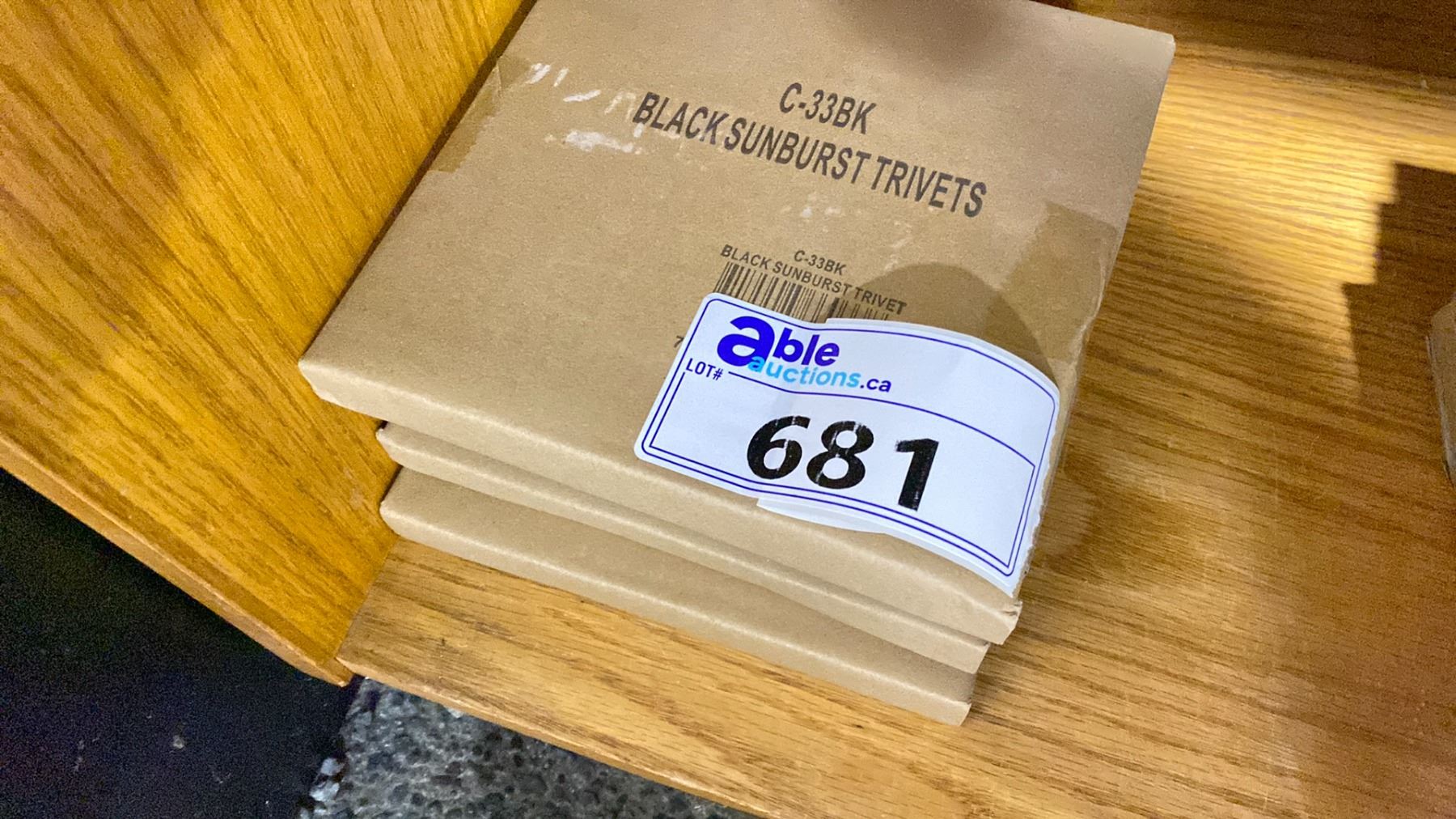 GROUP OF 4 BLACK SUNBURST CAST IRON TRIVETS RETAIL $300