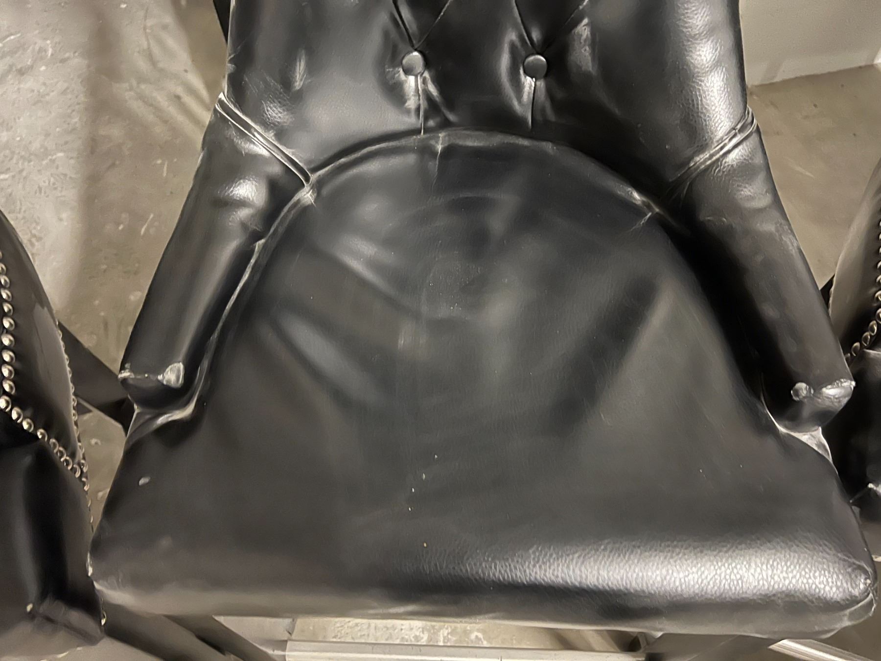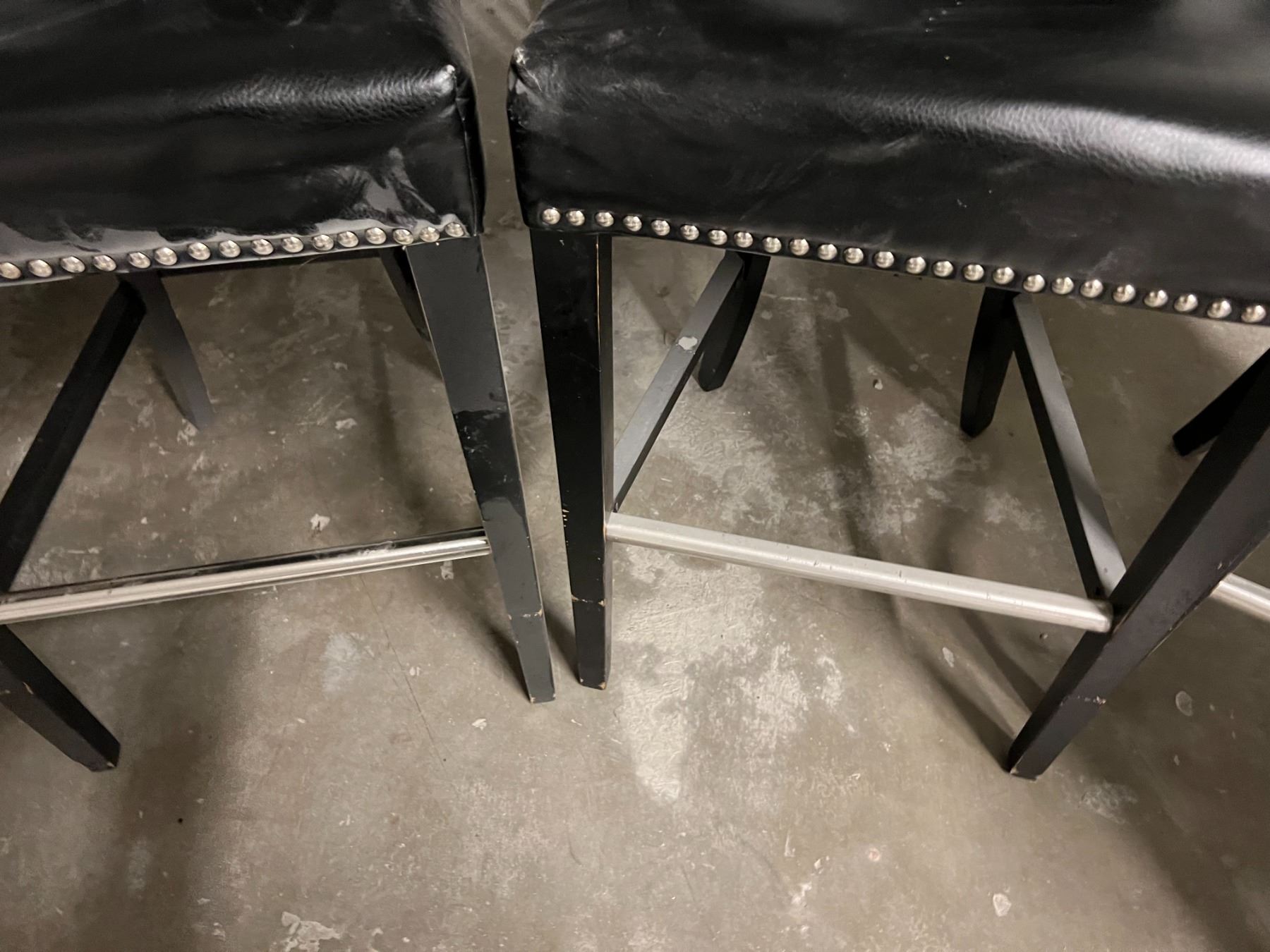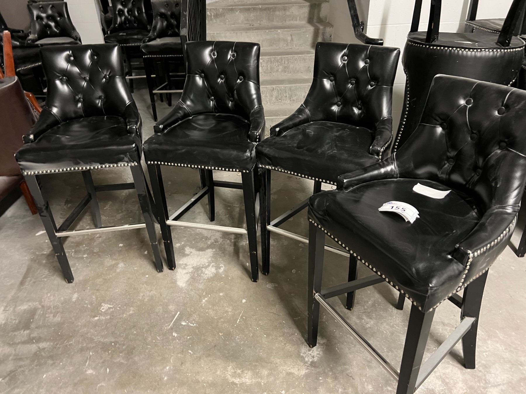 GROUP OF 4 BLACK UPHOLSTERED CHAIRS. SEAT HEIGHT IS 30". NOTE EACH CHAIR SEEMS TO HAVE A SMALL WEAR