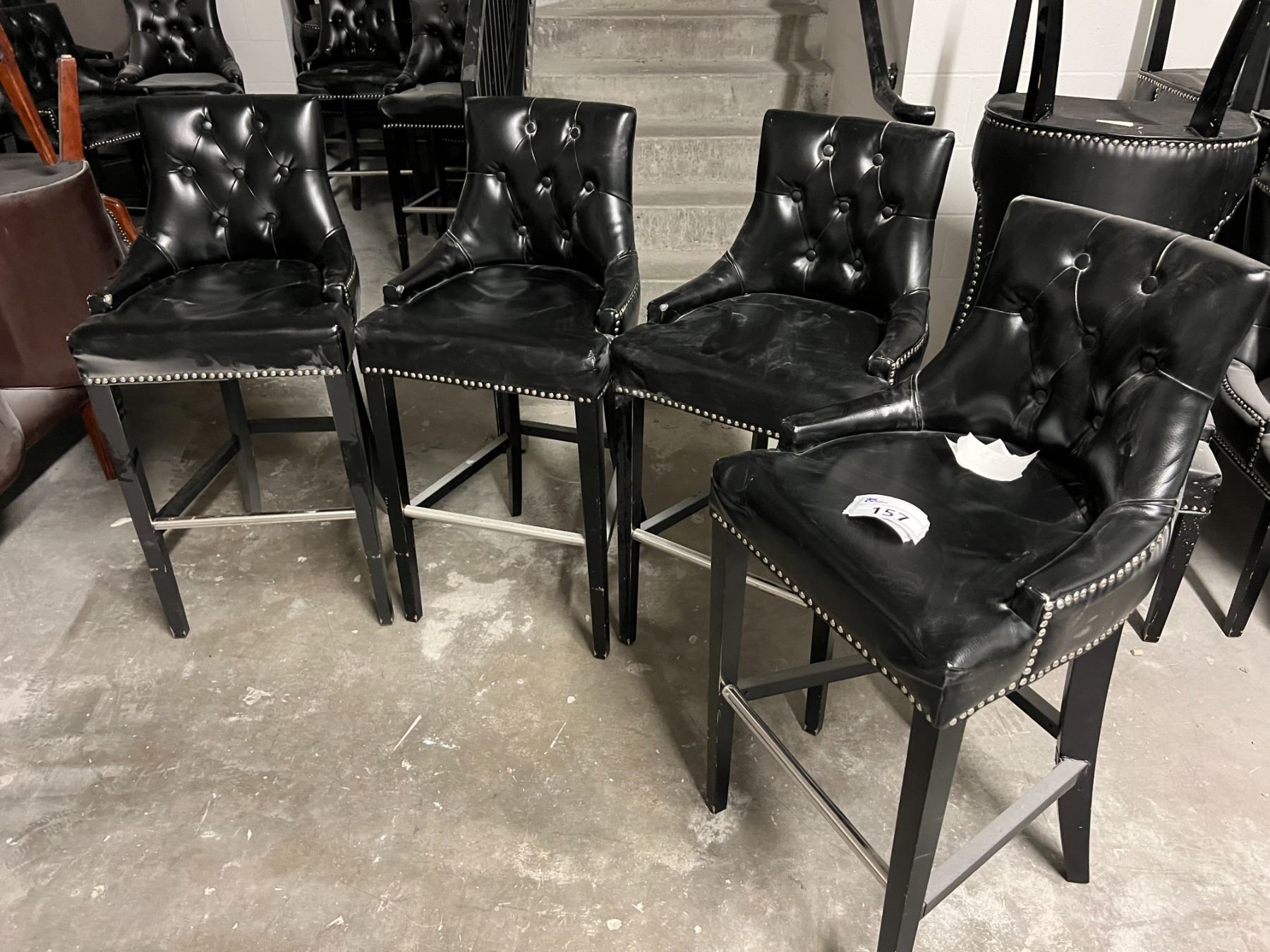GROUP OF 4 BLACK UPHOLSTERED CHAIRS. SEAT HEIGHT IS 30". NOTE EACH CHAIR SEEMS TO HAVE A SMALL WEAR