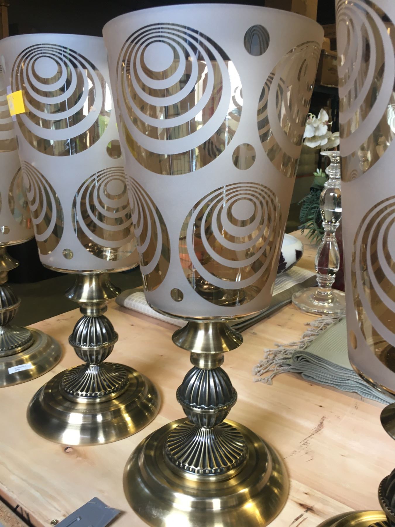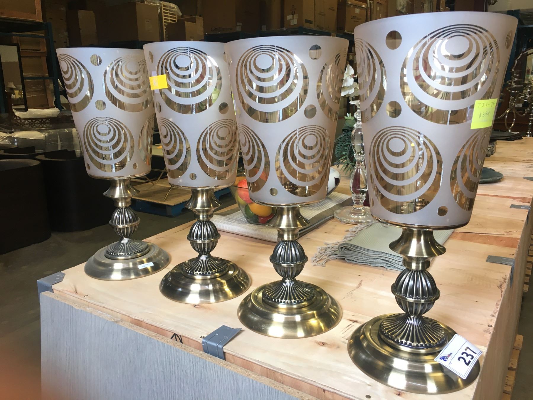 GROUP OF 4 GLASS & BRASS FINISH DRY FLOWER VASES