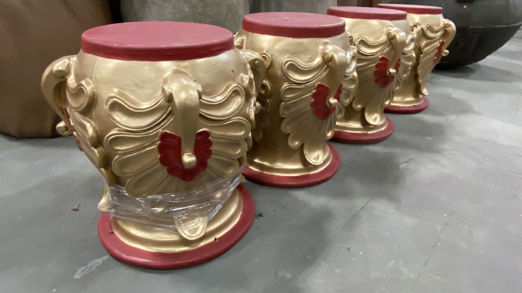 GROUP OF 4 GOLD AND RED PAINTED CARVED WOODEN PLANT STANDS