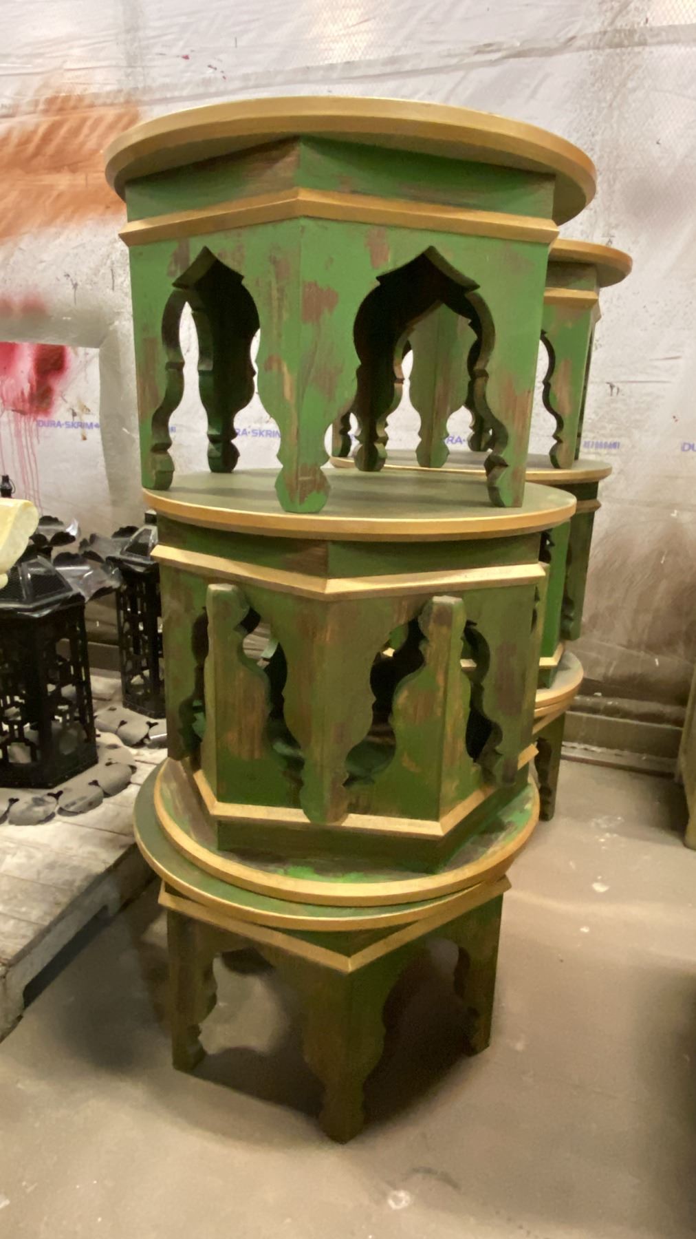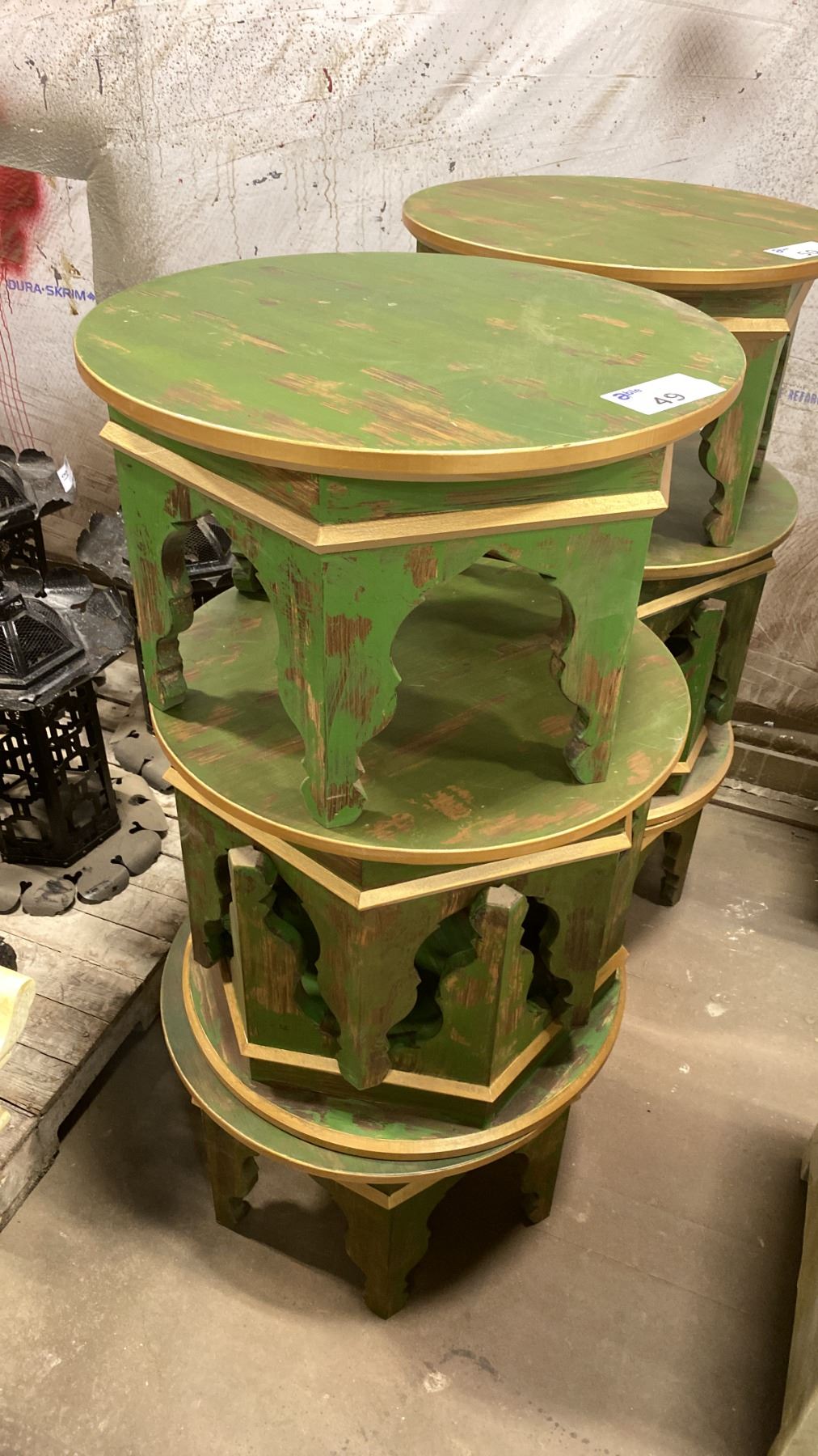 GROUP OF 4 GREEN & GOLD PAINTED ROUND SIDE TABLES