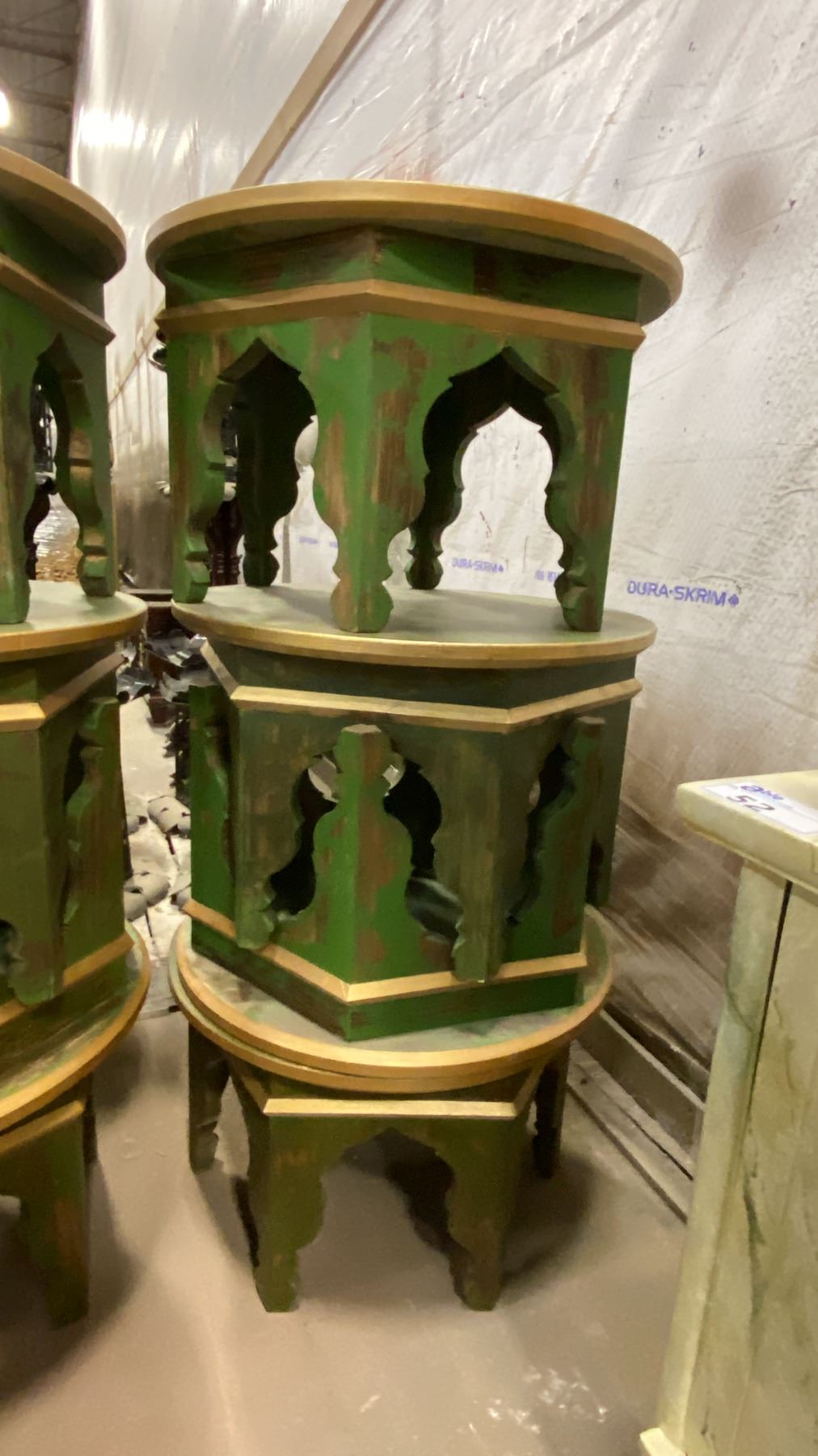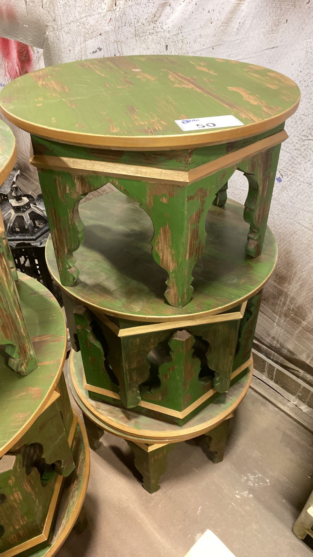 GROUP OF 4 GREEN & GOLD PAINTED ROUND SIDE TABLES