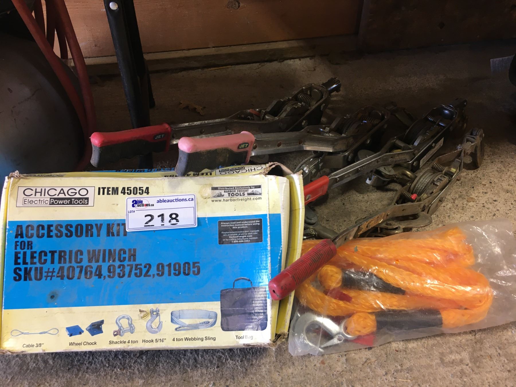 GROUP OF 4 HEAVY DUTY COME-A-LONGS, TOW STRAP & WINCH ACCESSORIES KIT
