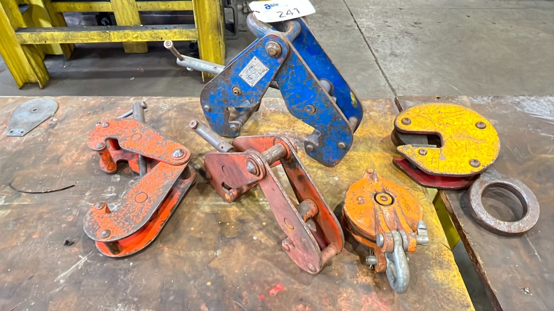 GROUP OF 4 HEAVY STEEL MOVING ATTACHMENTS & PULLEY