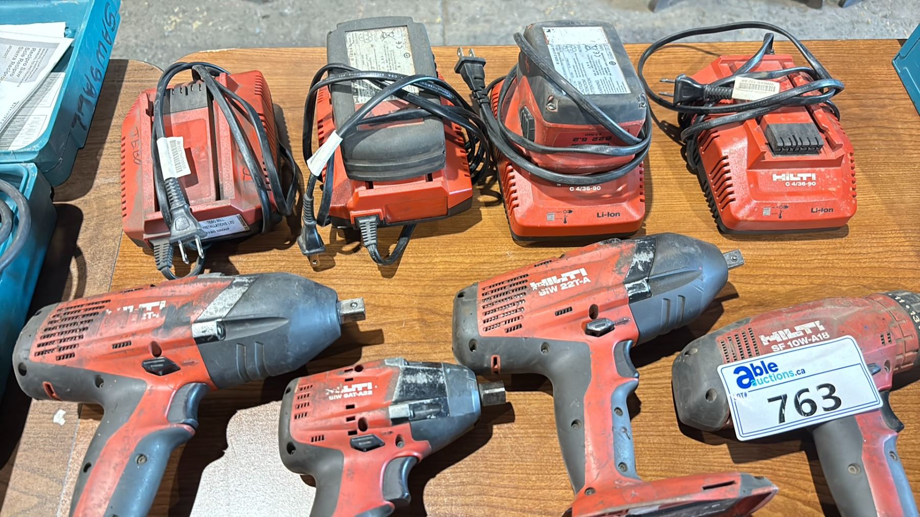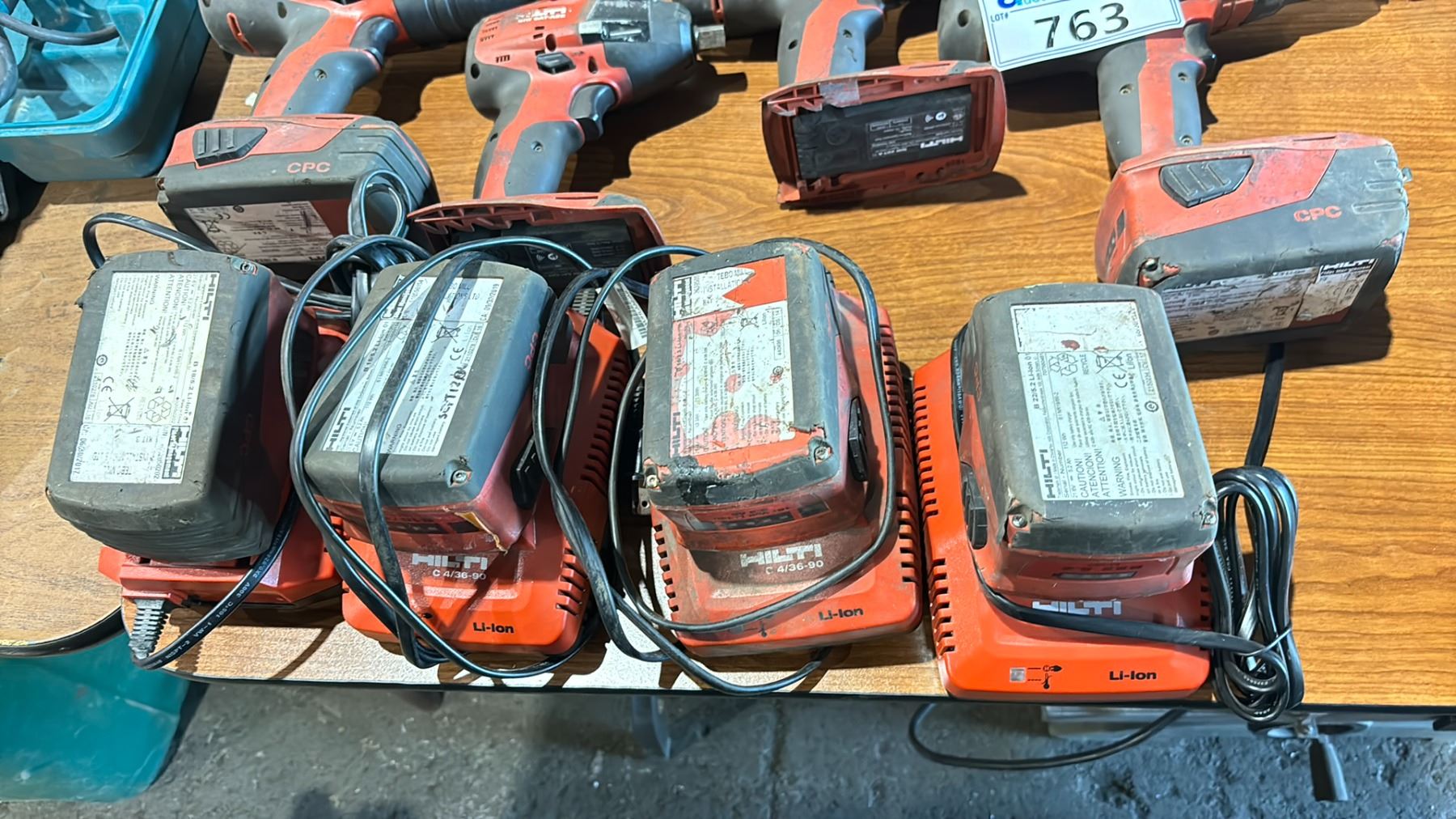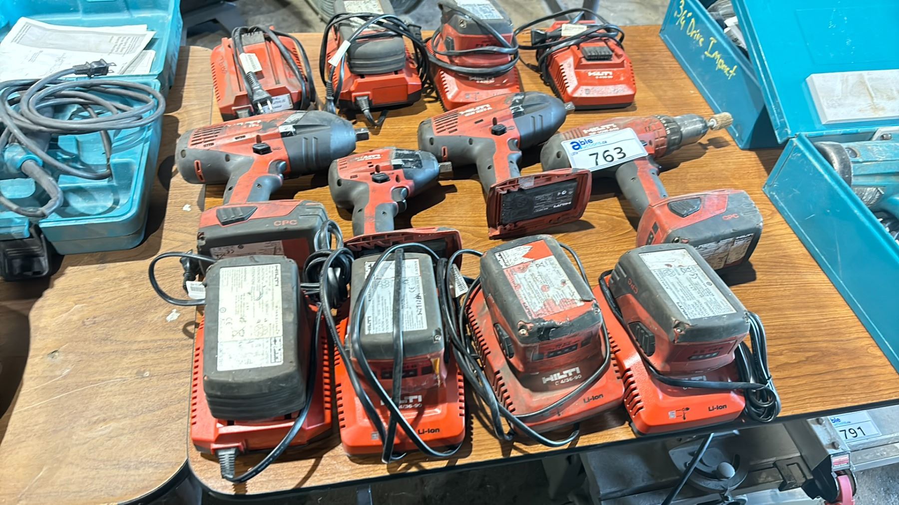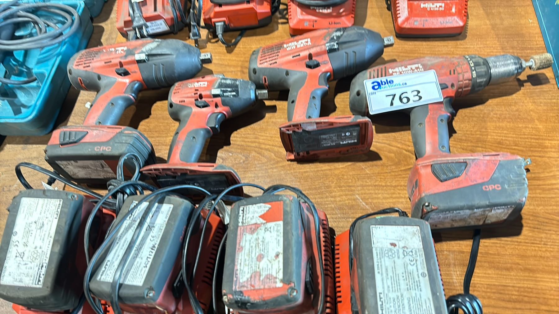 GROUP OF 4 HILTI POWER TOOLS - CORDLESS DRILL + 3 IMPACT WRENCHES WITH 8 BATTERIES & 8 CHARGERS