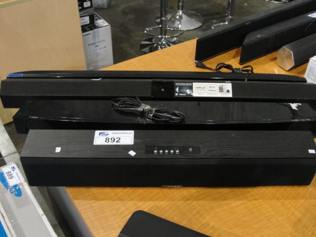 GROUP OF 4 HOME AUDIO SOUND BARS; LG, YAMAHA, SONY, AND PRECISION ACOUSTIC