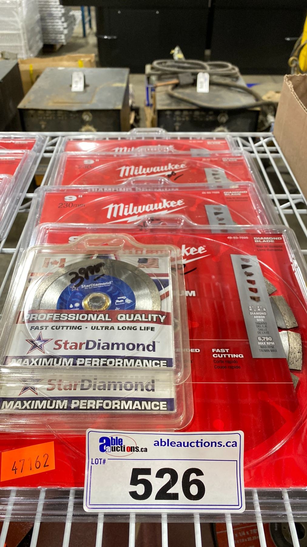 GROUP OF 4 MILWAUKEE 9" DIAMOND PREMIUM SAW BLADES & 2 STAR DIAMOND 4 1/2" BLADES